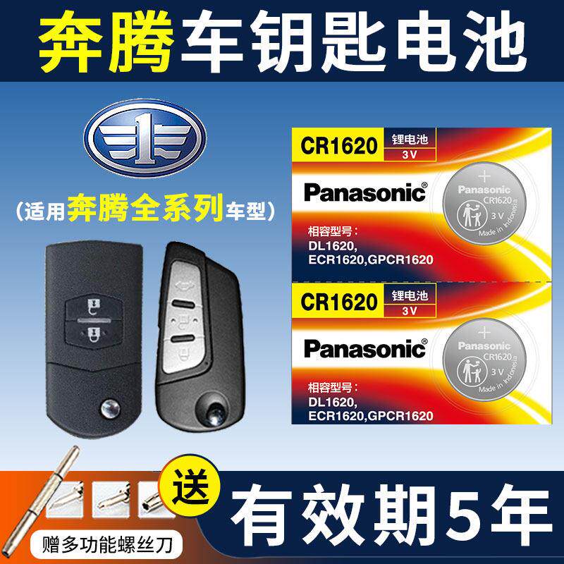 一汽 奔腾B70 T77 X80 B50 X40 B30 B90 T33汽车钥匙电池原装CR1620原厂专用b7o智能遥控器电子13新款14叉09