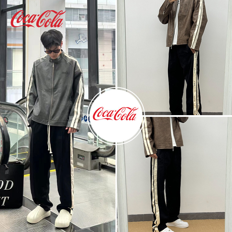 Coca-Cola可口可乐 美式复古机车皮衣外套直筒宽松休闲裤运动套装