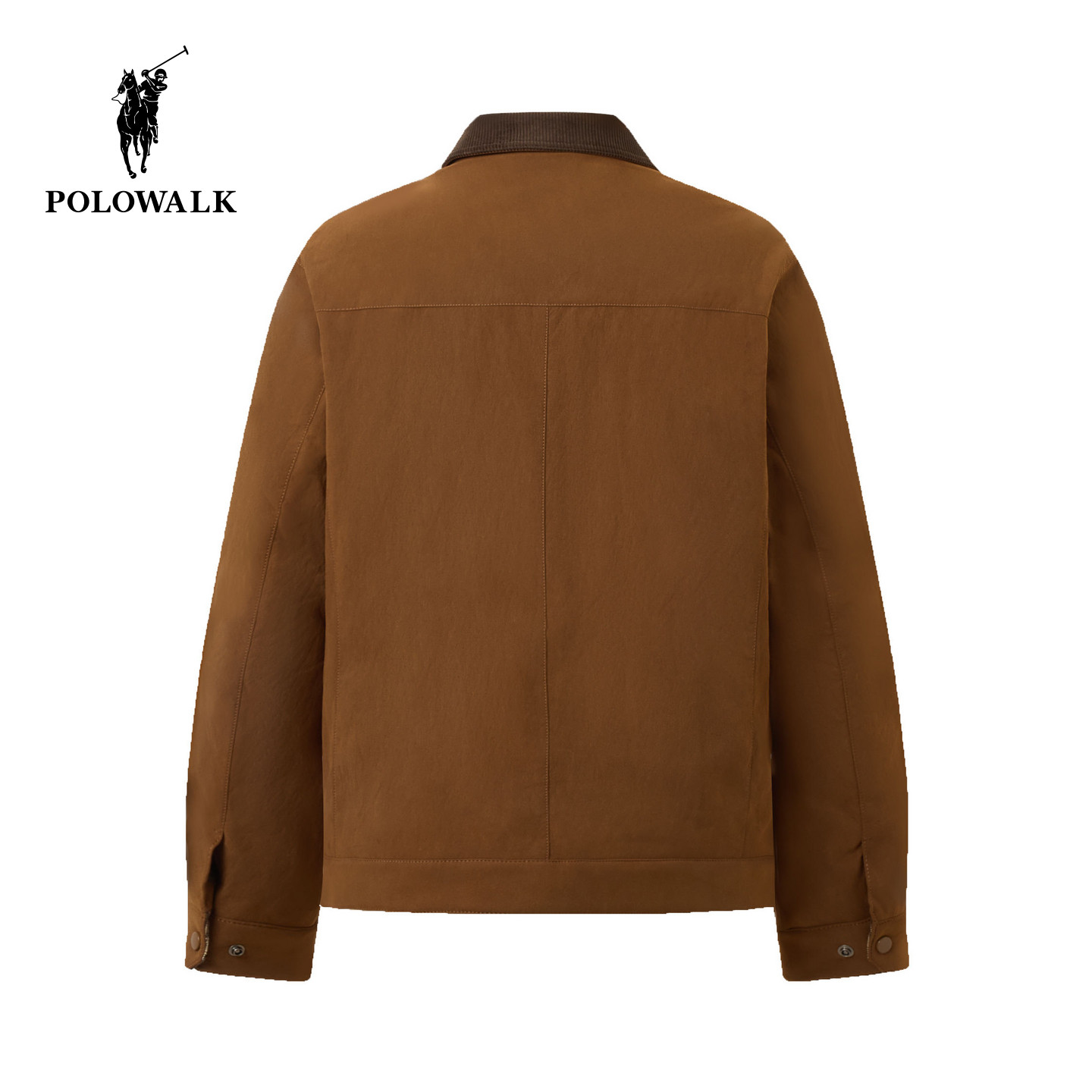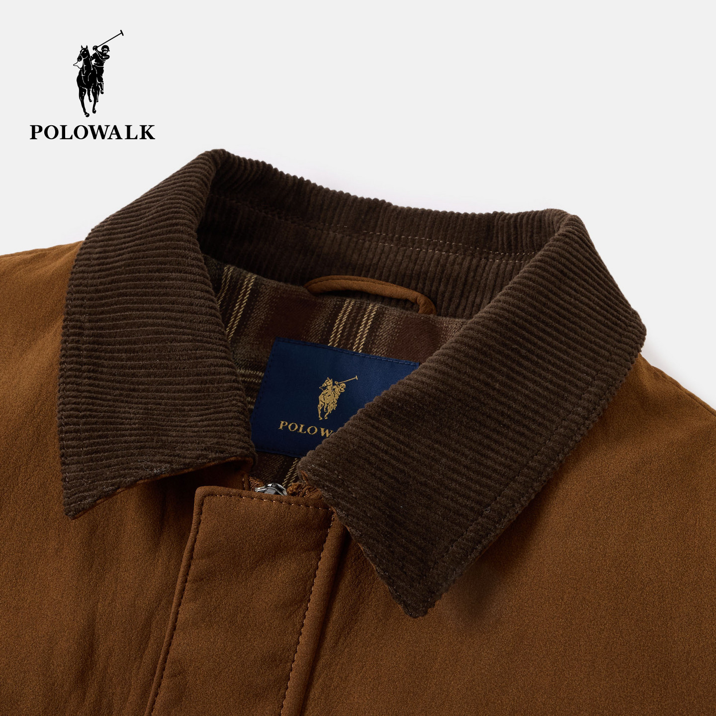 POLOWALK男式皮衣2025冬季新品撞色复古翻领格纹袖口翻边羽绒外套