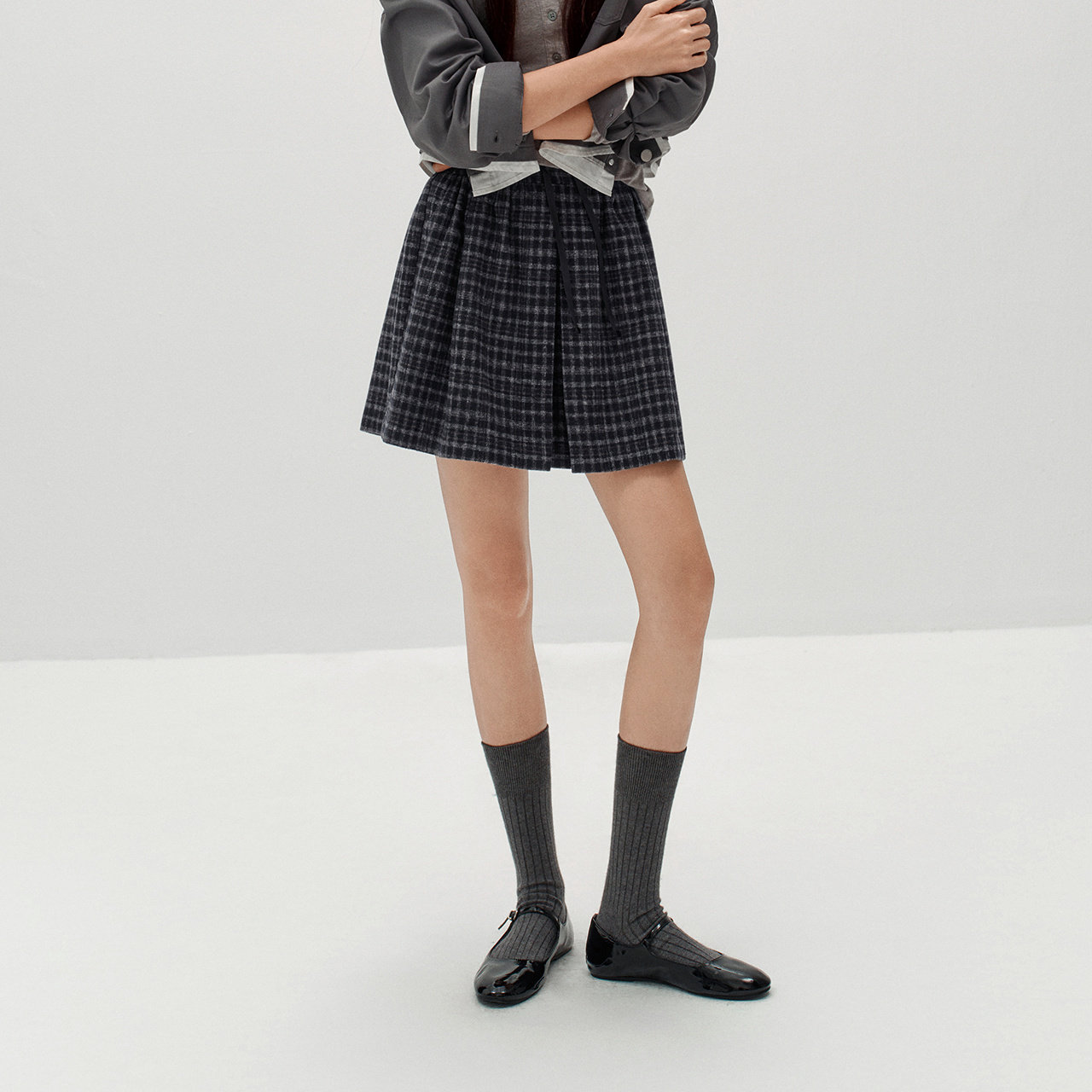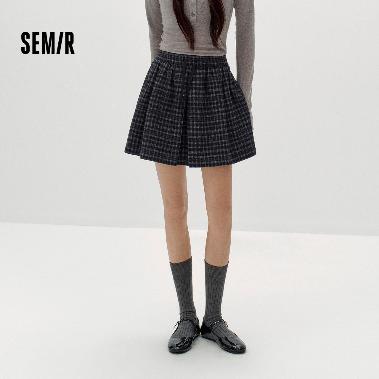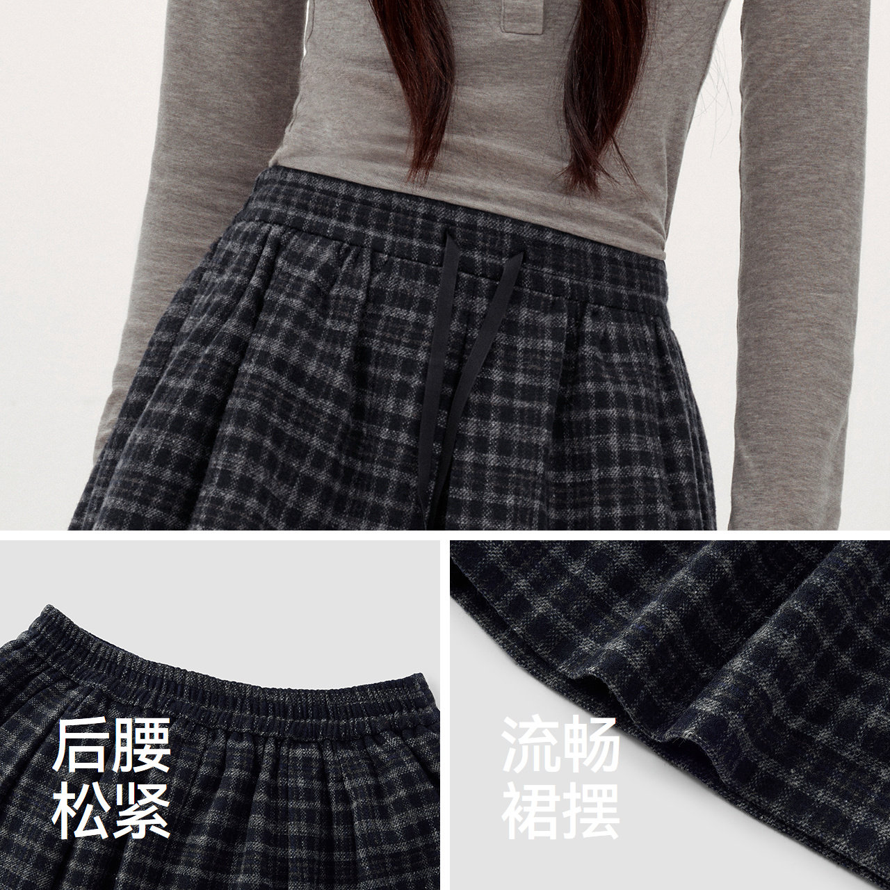 商场同款|森马半身裙女冬季毛呢格纹A字裙含羊毛2025新款复古短裙