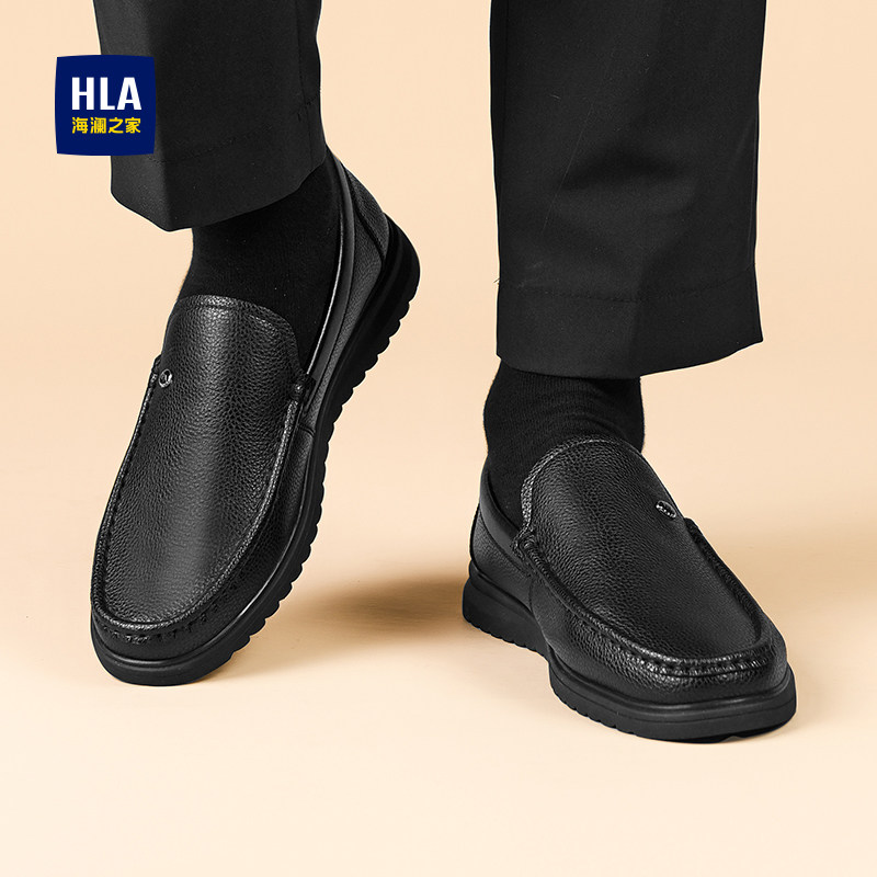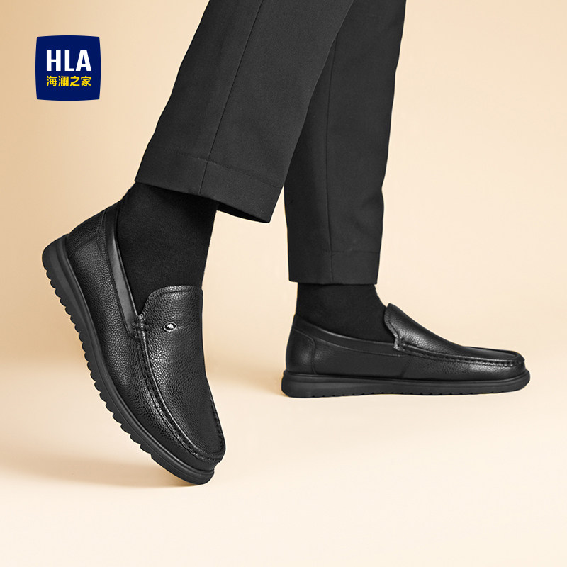 HLA/海澜之家男鞋新款正装一脚蹬皮鞋透气乐福鞋中年豆豆鞋