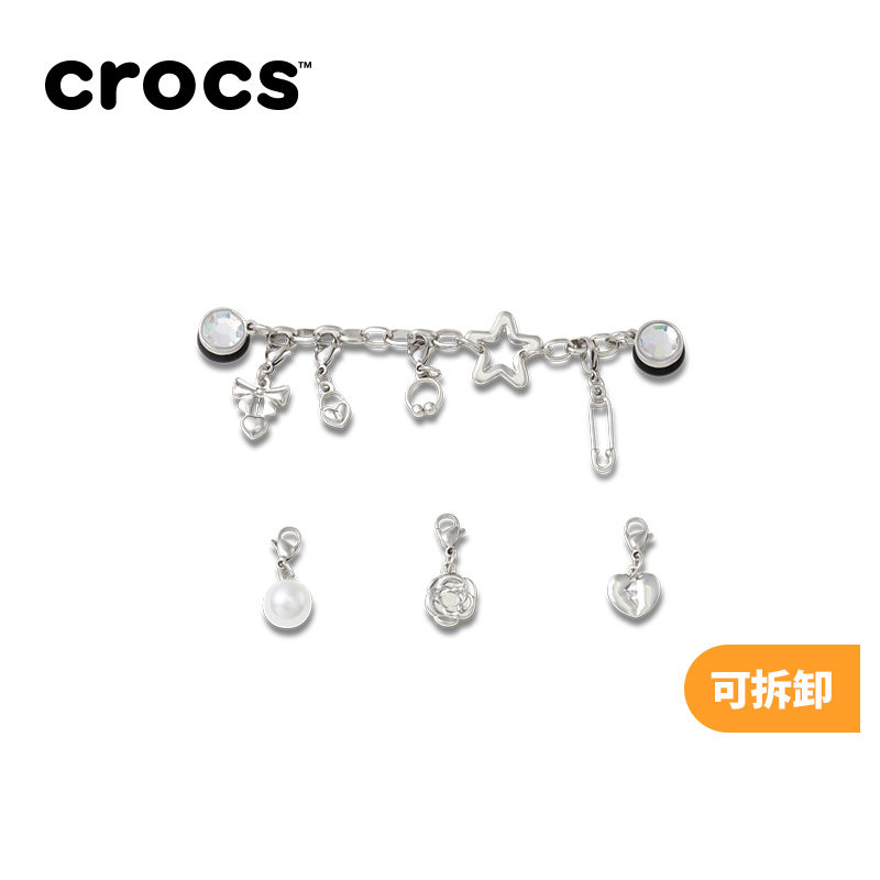 Crocs卡骆驰智必星配件洞洞鞋花 可拆卸银色朋克链条
