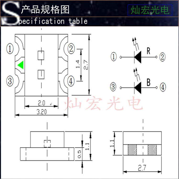1206贴片LED超高亮 蓝绿双色 发光二极管 3227蓝翠绿 SMD LED灯珠