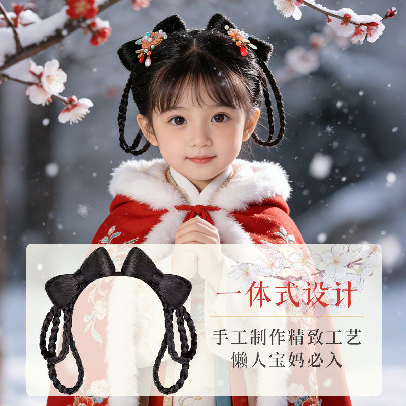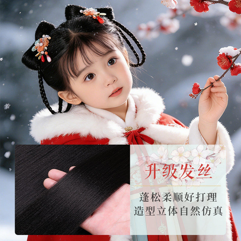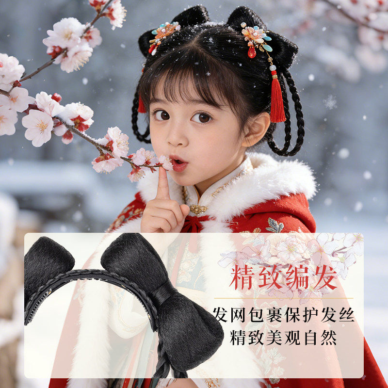 儿童古风假发新年拜年汉服头饰一体式古装发髻盘发造型女童垫发包