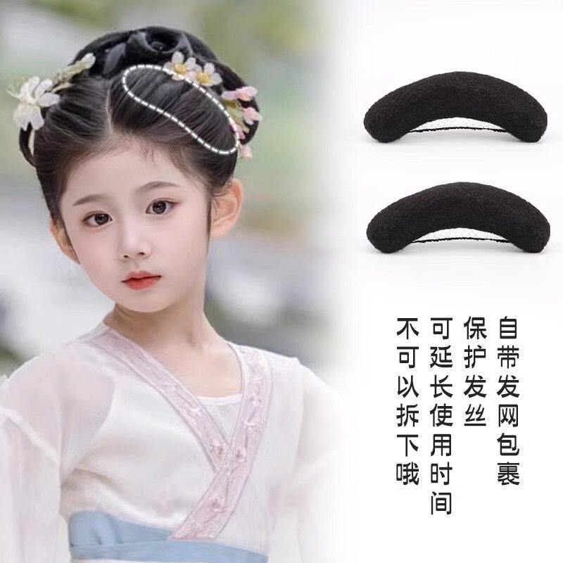 儿童汉服假发包古风盘发发髻秃子乐女古装扁牛角两侧垫发造型发丝