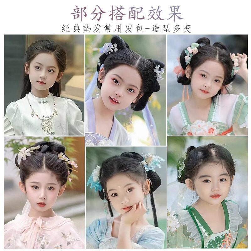 儿童汉服假发蝴蝶结发髻造型古装假发包女童汉服假发头饰假发古风