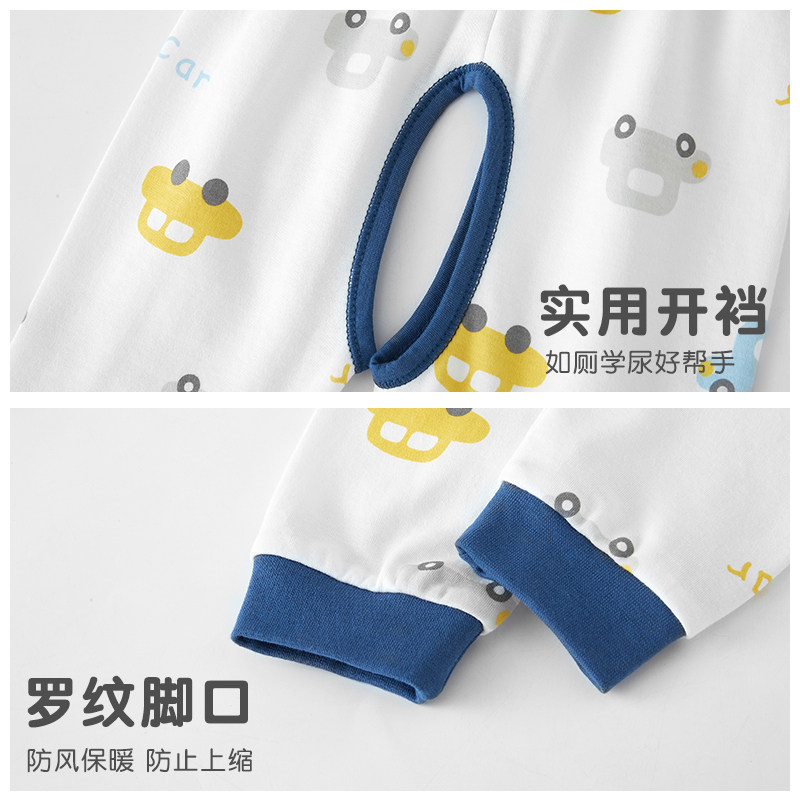 婴儿开裆裤男宝宝春秋纯棉高腰护肚秋裤男童睡裤秋冬外穿打底薄款