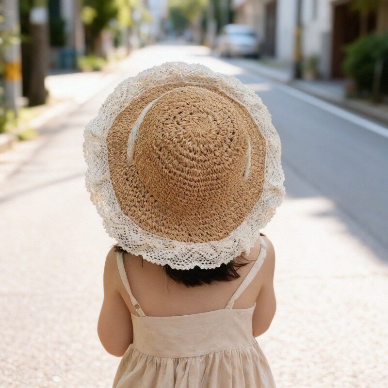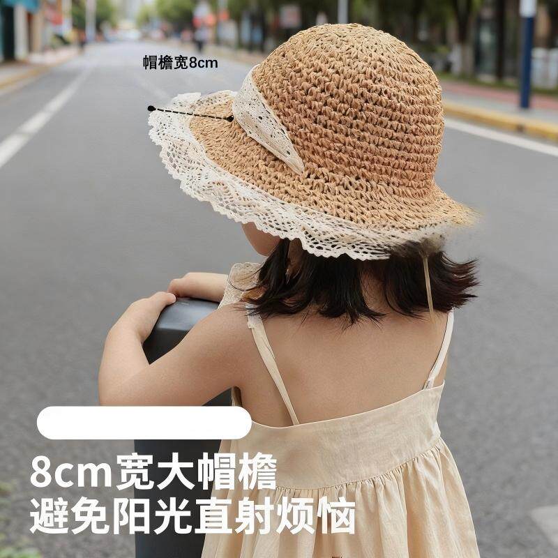 草帽夏季女童海边沙滩帽儿童帽子2026新款遮阳帽女式防晒帽太阳帽