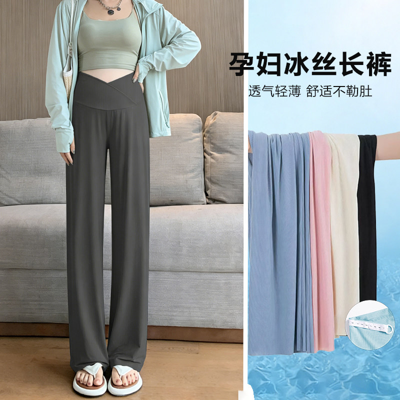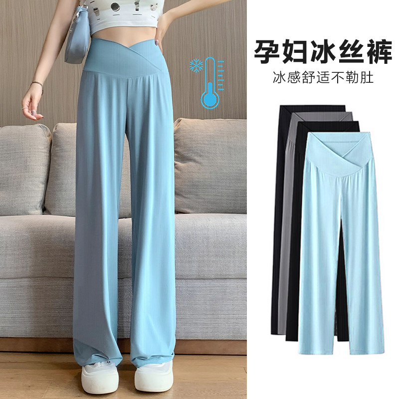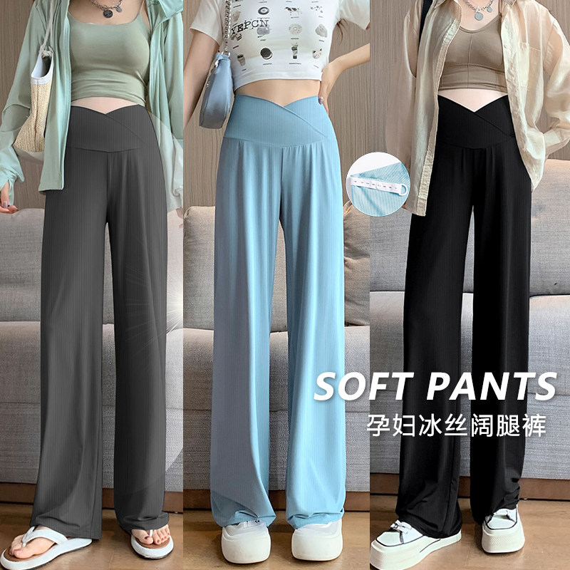 孕妇阔腿裤夏季薄款外穿冰丝宽松大码打底裤子女夏装孕晚期孕妈