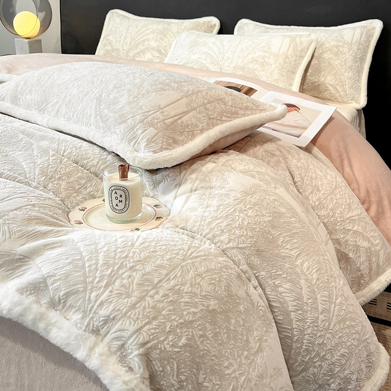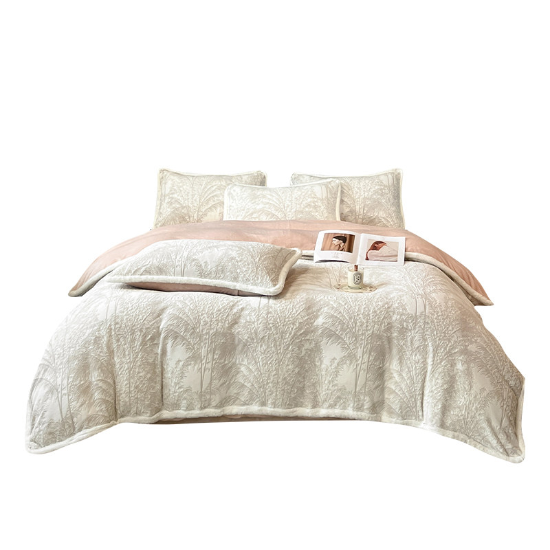 冬季加厚牛奶绒雕花床上四件套加绒被套床单双面珊瑚绒床品三件套