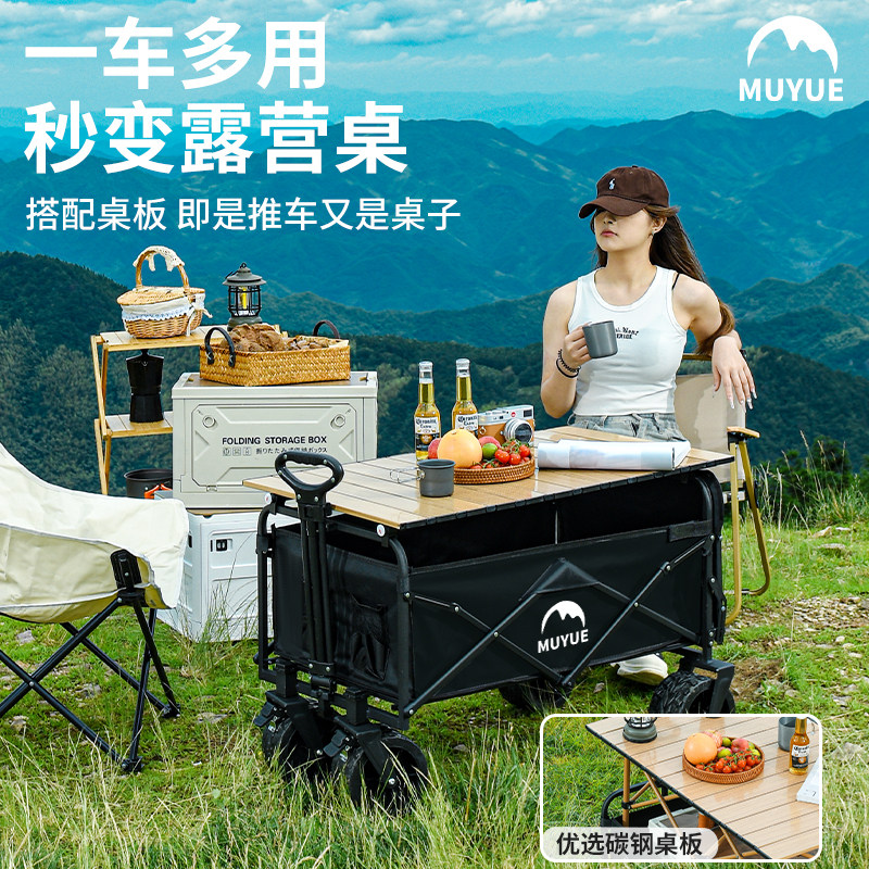 歌秀丹露营推车营地拖车户外折叠超大野营手拉车小推车野餐车桌板