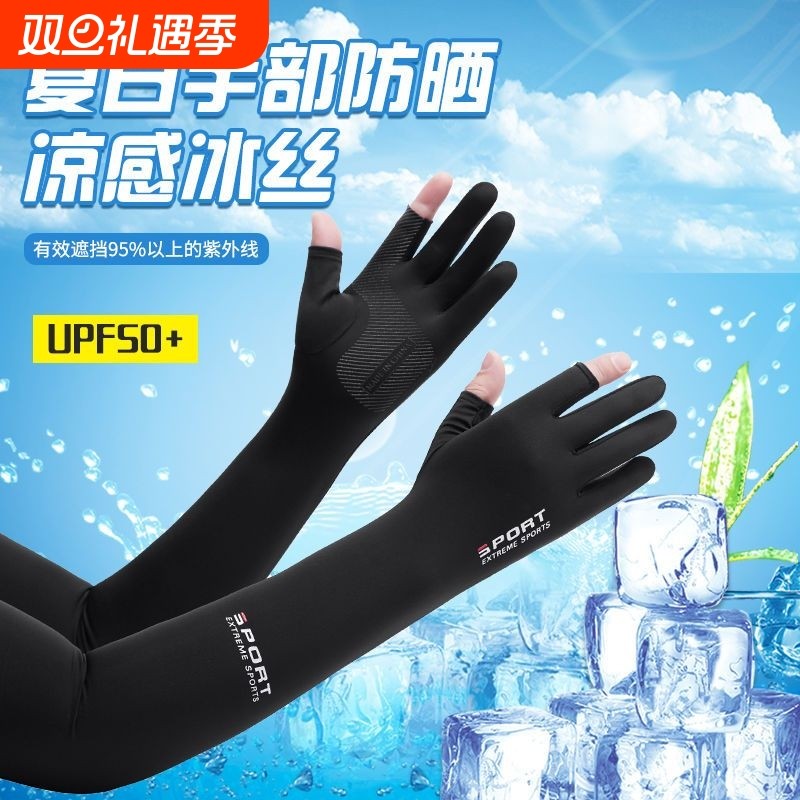 冰袖漏二指手套男女春夏季士防晒骑行冰丝袖套开车防滑长款冰袖男