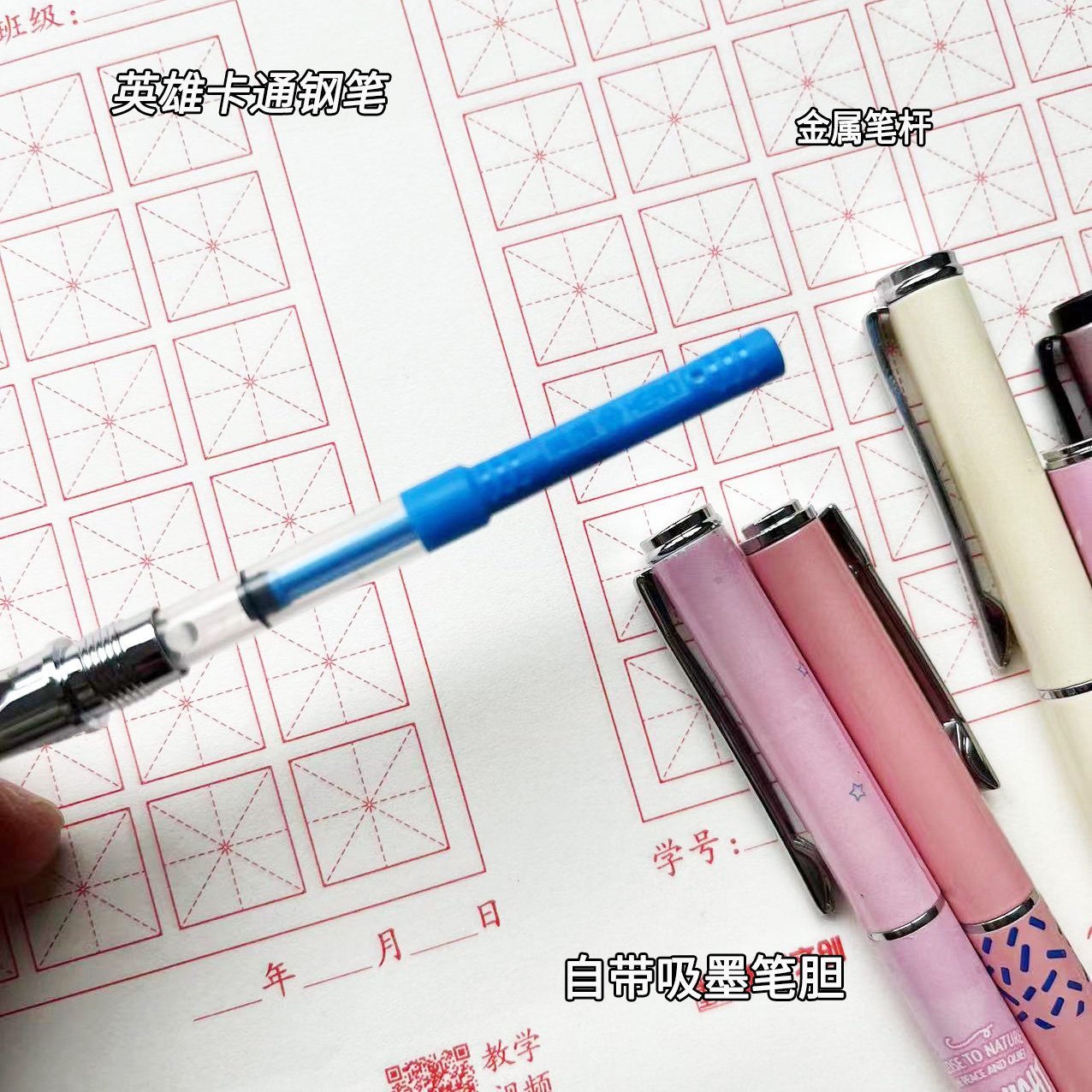 英雄钢笔小学生三年级专用可替换墨囊儿童练字刚笔女孩男孩卡通笔