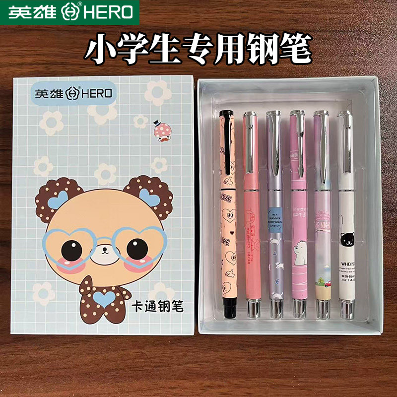 英雄牌钢笔小学生三年级专用正姿练字高颜值可替换墨囊四年级男女孩儿童初学者中学生可爱卡通钢笔官方旗舰