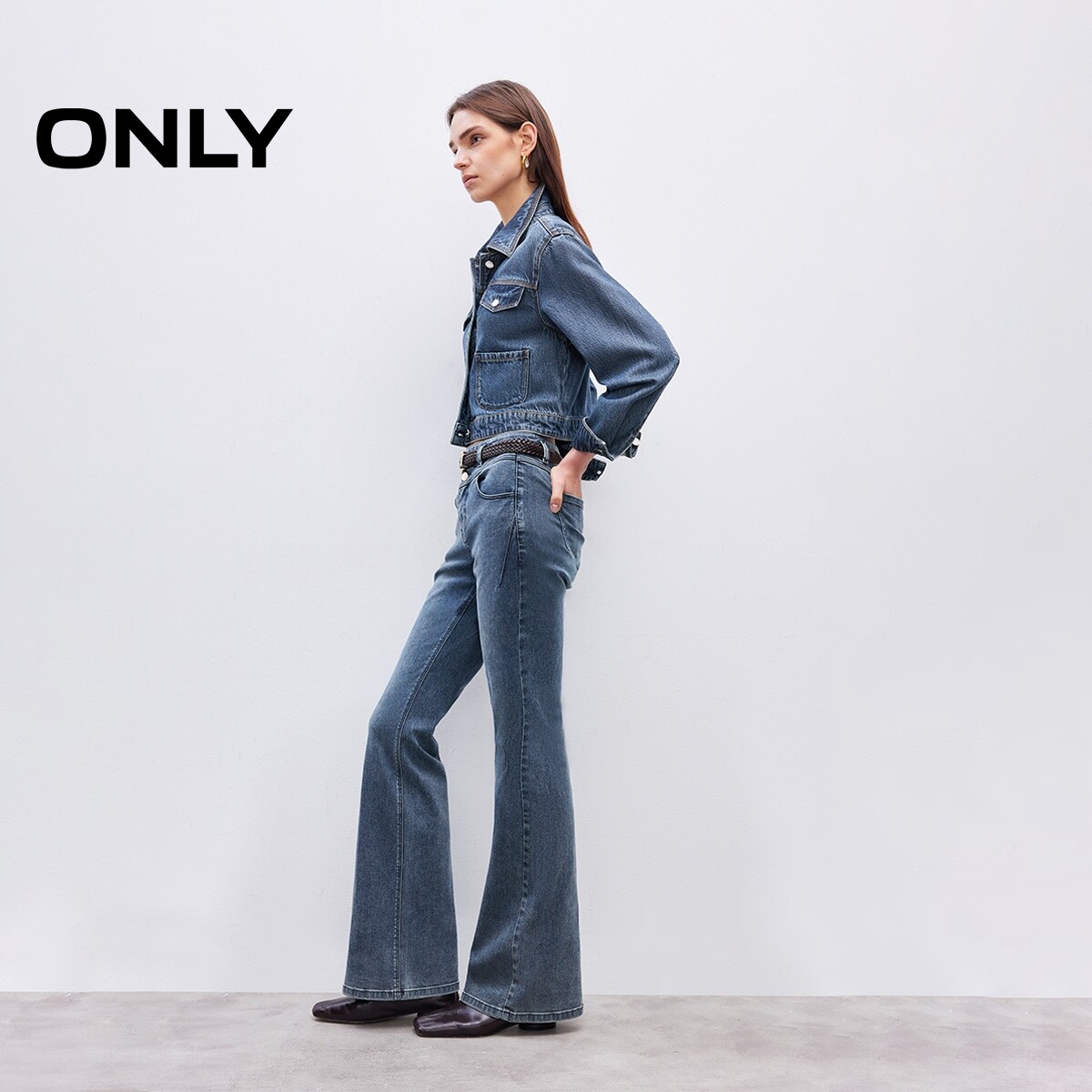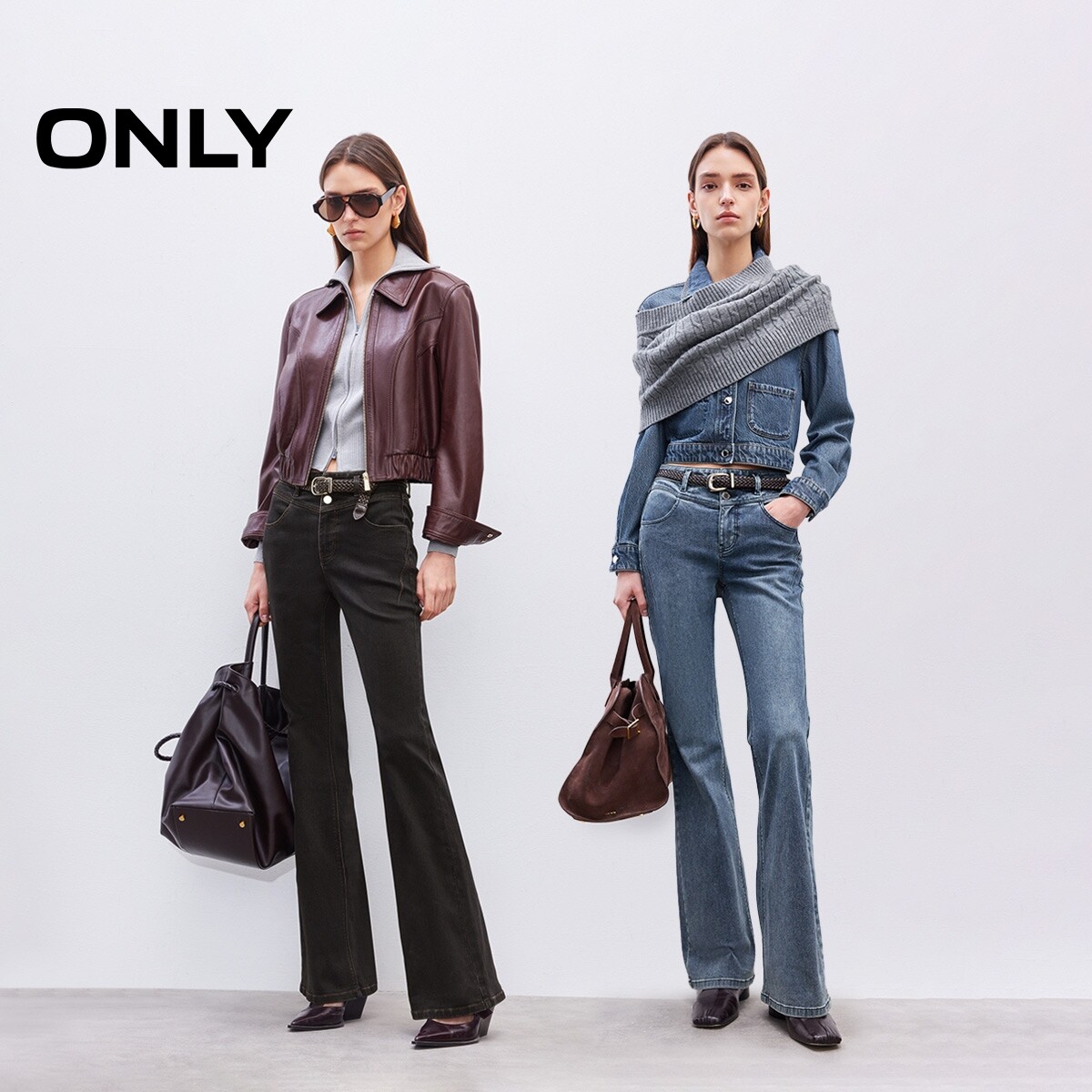 ONLY2026春季新款双粒纽扣门襟高腰约克线剪裁显瘦微喇牛仔裤女