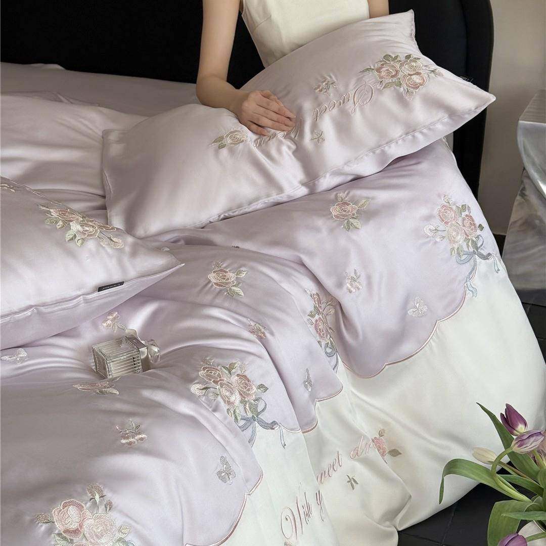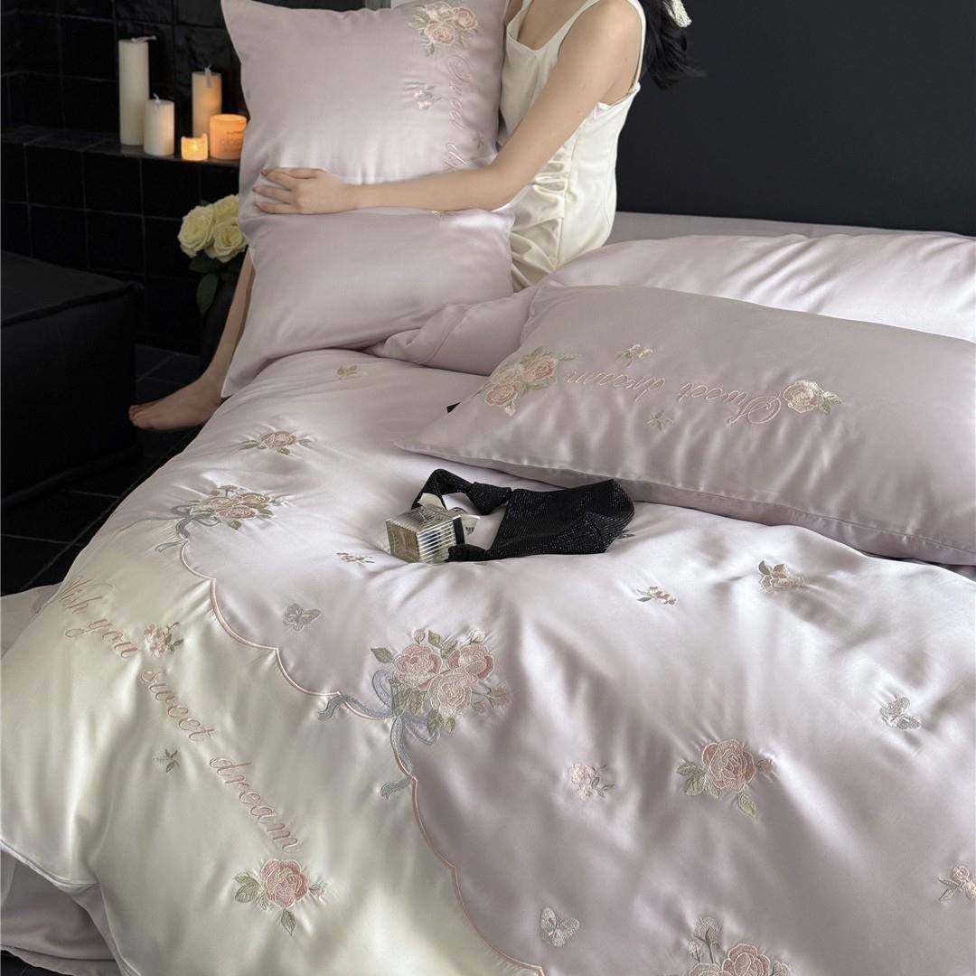 少女心花卉刺绣丝滑凉感床品夏季兰精莱赛尔天丝四件套家纺泡芙发