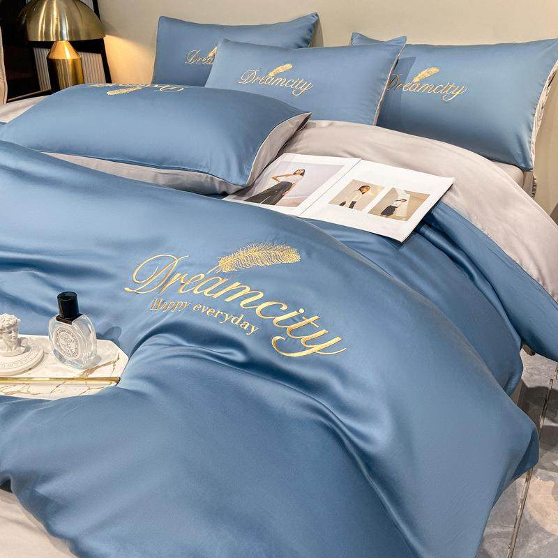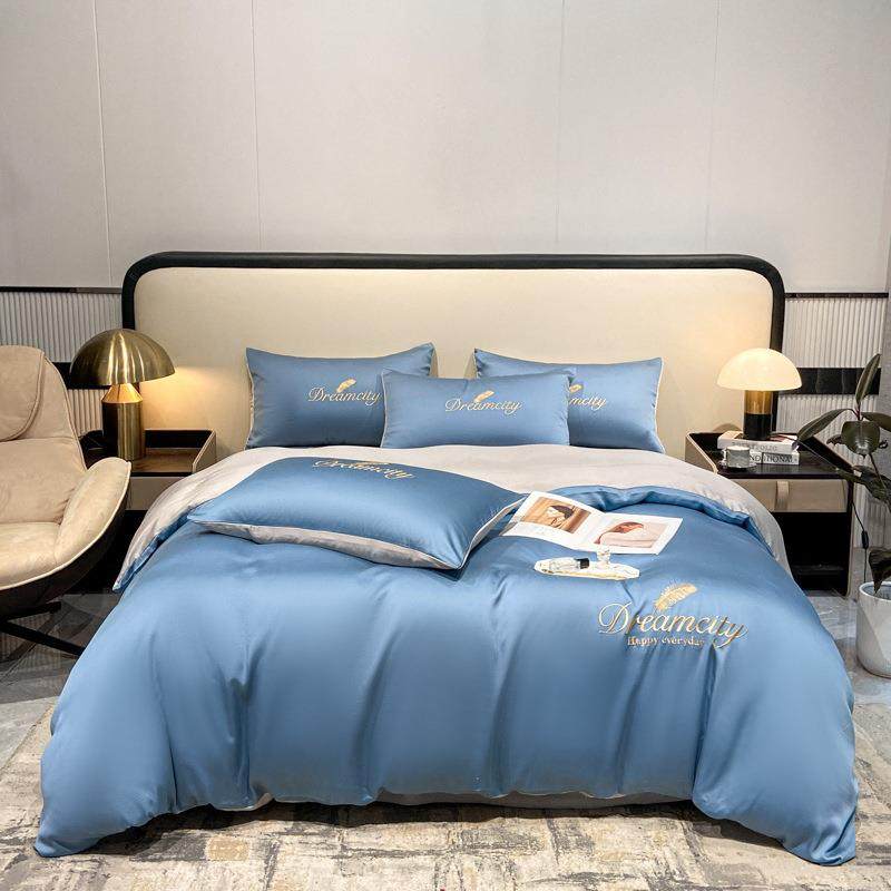 轻奢风冰丝床上四件套夏季夏天夏凉裸睡床品宿舍床单被套三件套