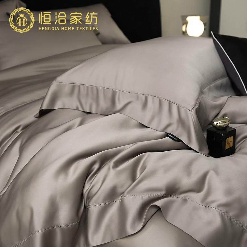 东帝兴超细旦莱赛尔四件套春夏季高端镂空凉感裸睡被套床品灰紫色
