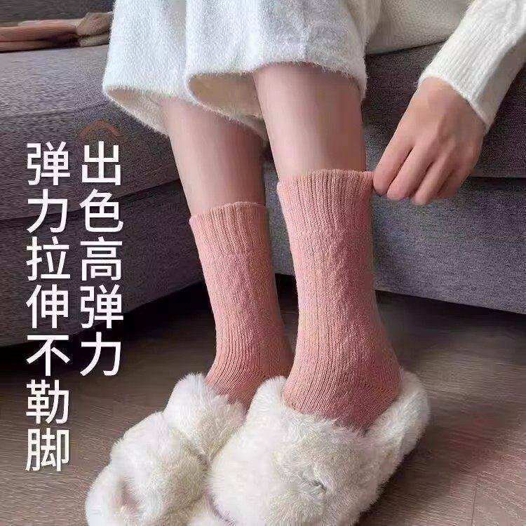 厚袜子女秋冬款中筒袜潮款纯色毛圈花纹长袜冬天高筒加绒加厚保暖
