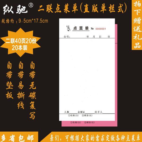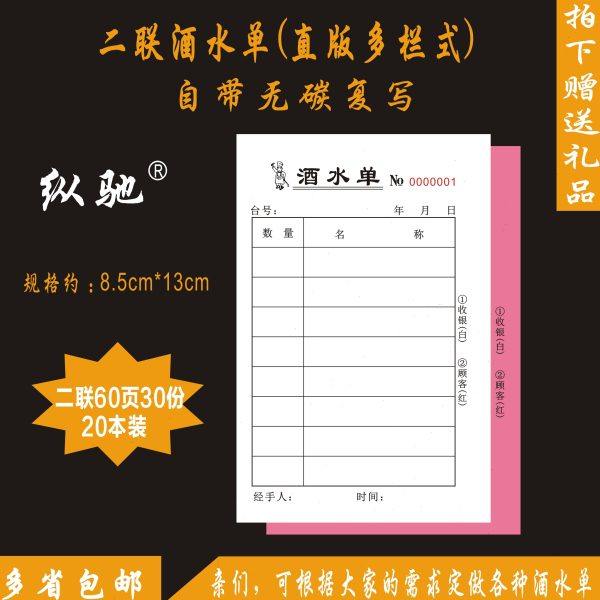 160本装二联酒水单定制订做吧台点菜单一联三联饭店烧烤单餐饮单