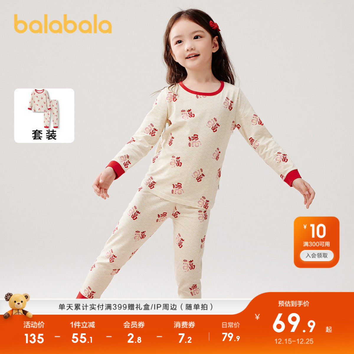 巴拉巴拉童装儿童内衣裤套装春秋季新款男童内衣女童睡衣保暖衣潮