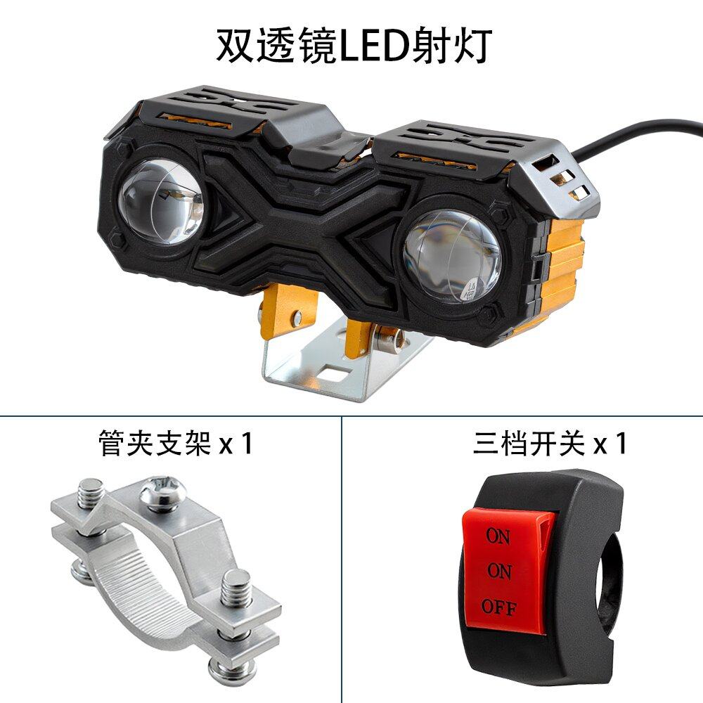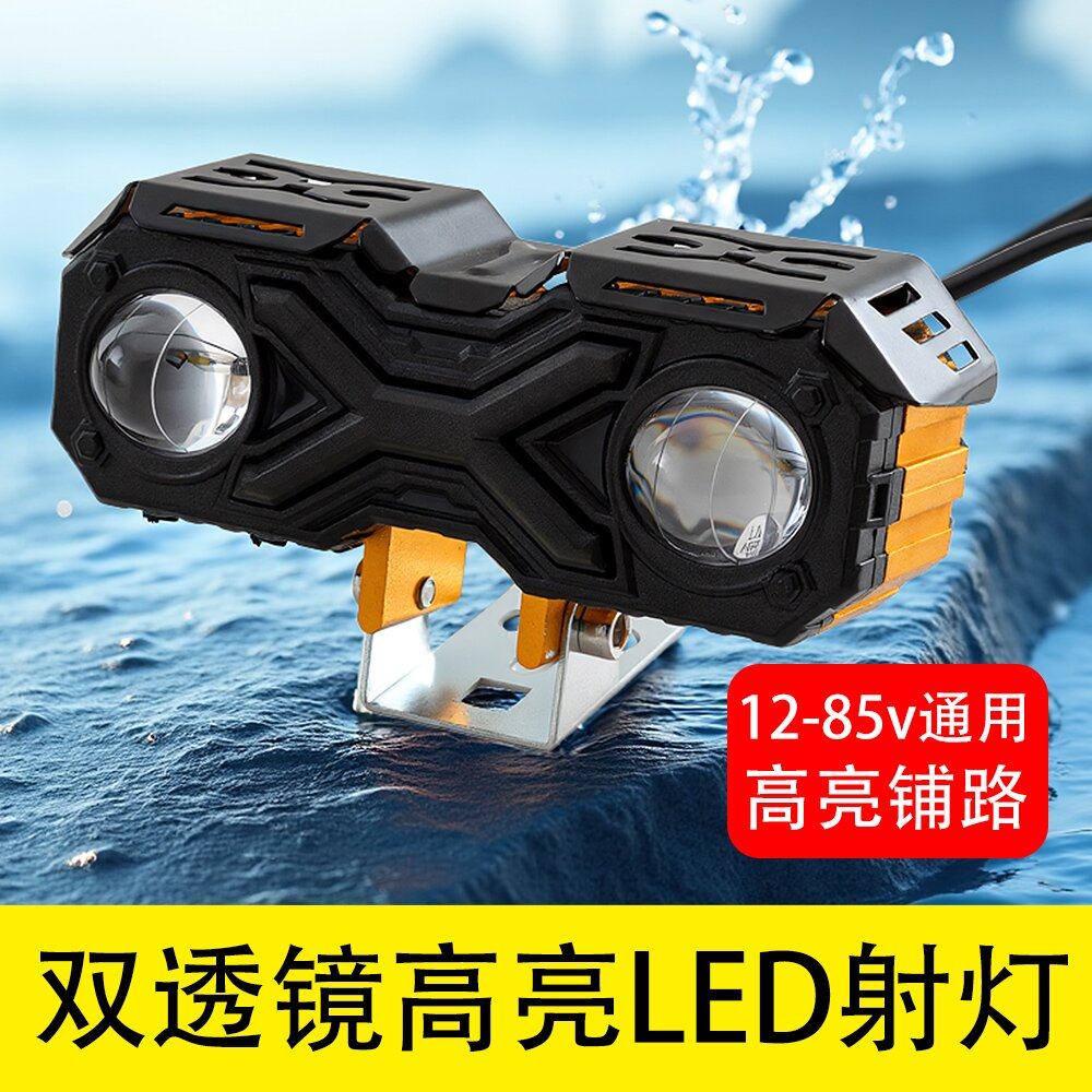摩托车射灯LED辅路强光外置大灯电动车超亮防水改装黄白光炫彩灯