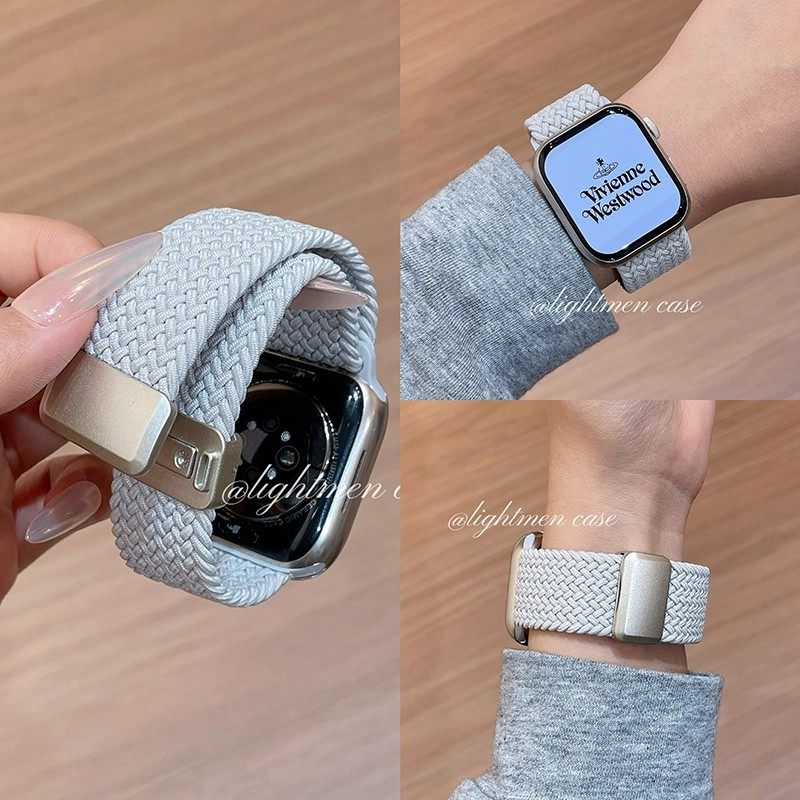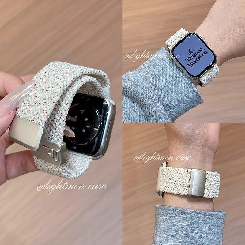 适用iwatch11苹果手表applewatch10表带s9新年喜庆红色尼龙编织s8s7磁吸Ultra23新款45SE简约6女款S9情侣小众
