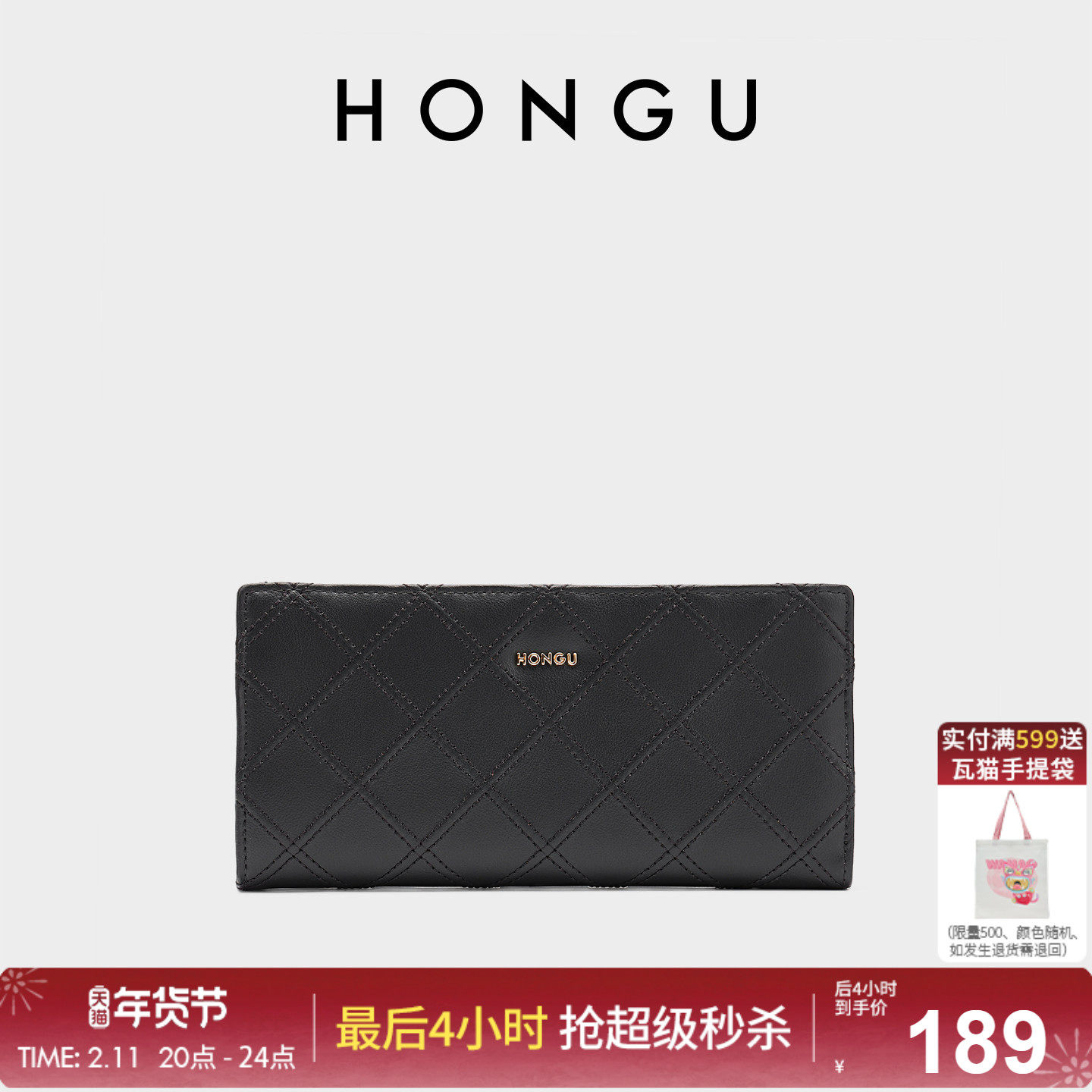 红谷新款牛皮钱包女长款时尚菱格钱夹多卡位折叠皮夹小手包手拿包