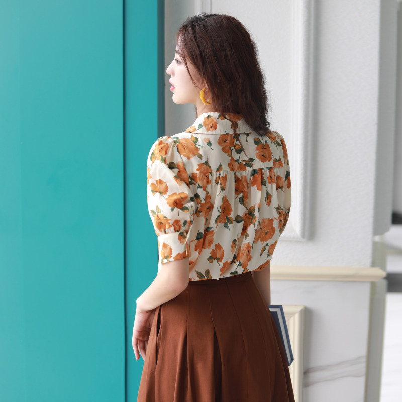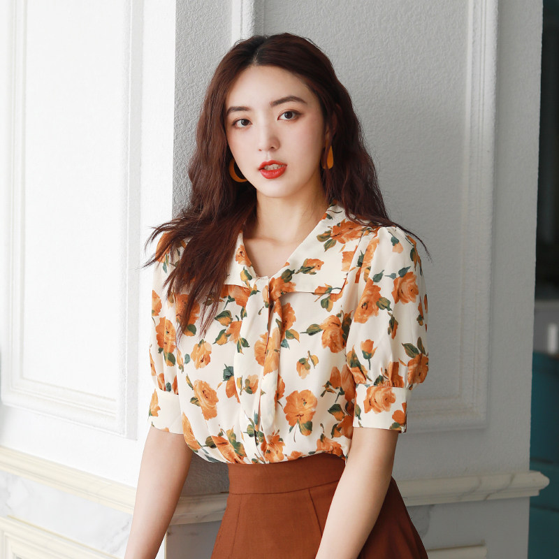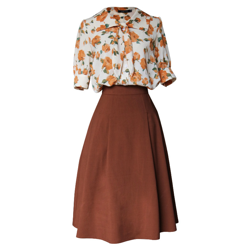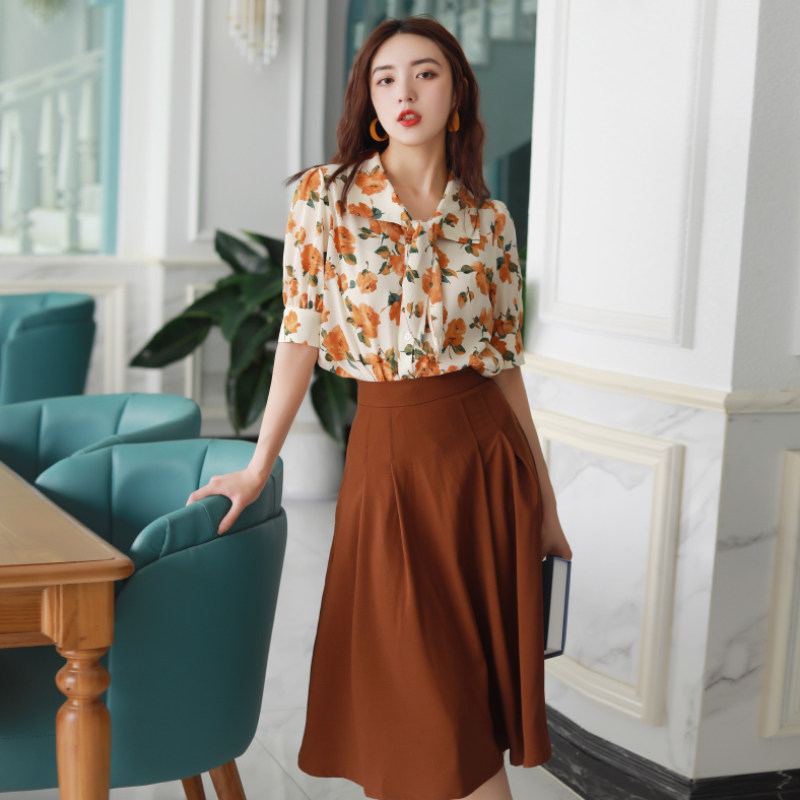 法式复古短袖雪纺碎花衬衫上衣半身裙套装连衣裙两件套女新款夏季