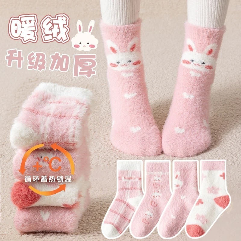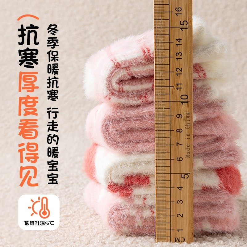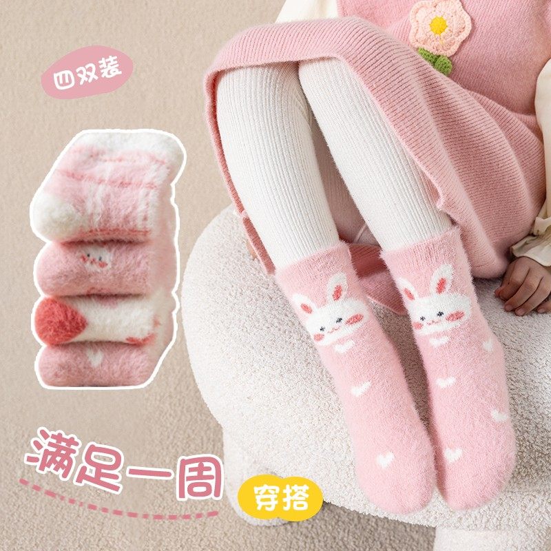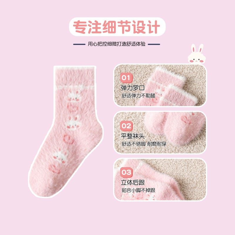女童袜子水貂绒厚秋冬季保暖加绒加厚卡通兔中筒睡眠地板宝宝袜子