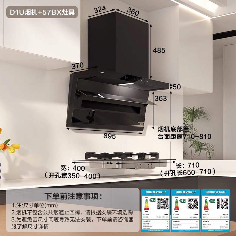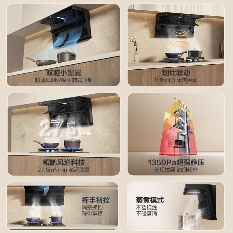 老板官方旗舰店小黑翼D1U烟灶套装油烟机燃气灶具家用厨房大吸力