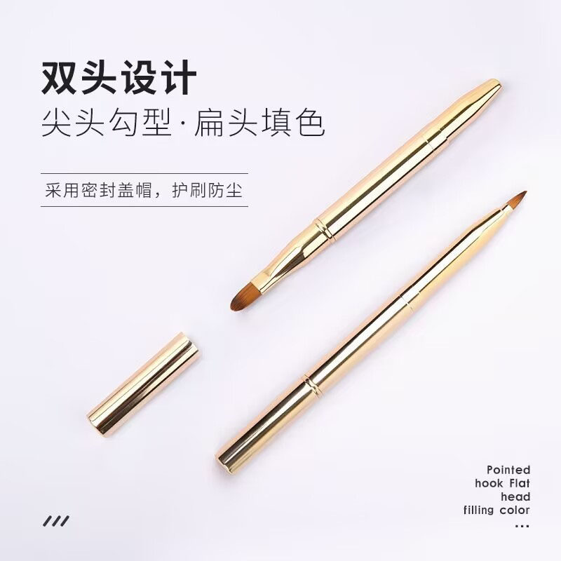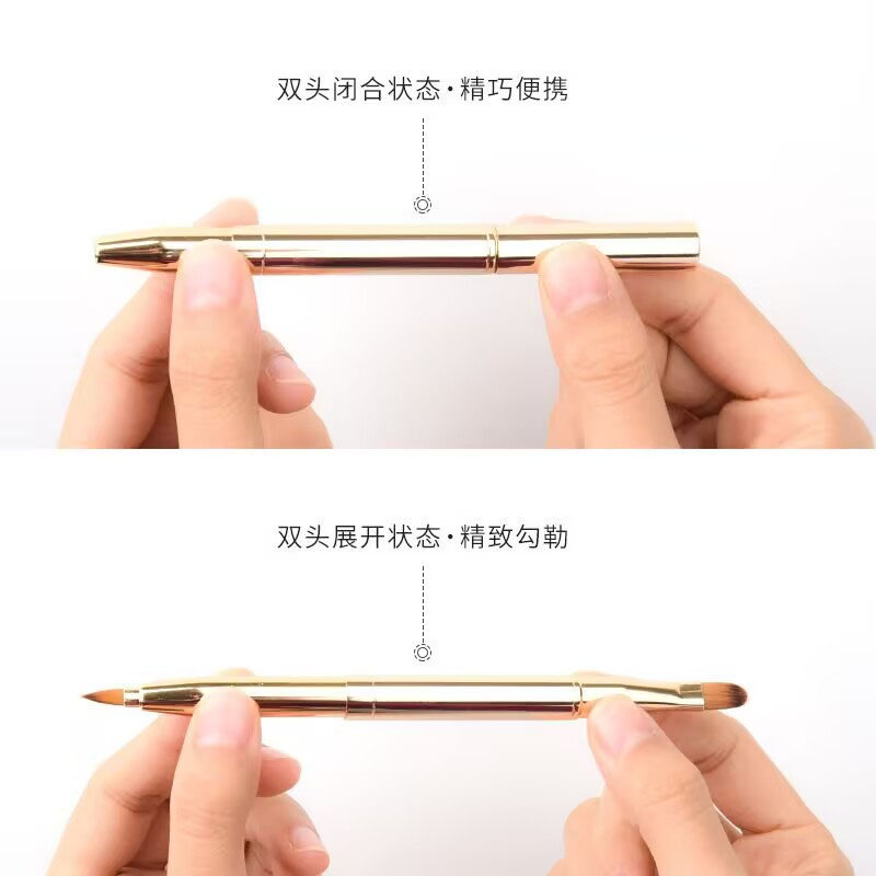 化妆专用双头化妆刷金属伸缩双头唇刷带盖小巧便携唇刷晕染口红刷