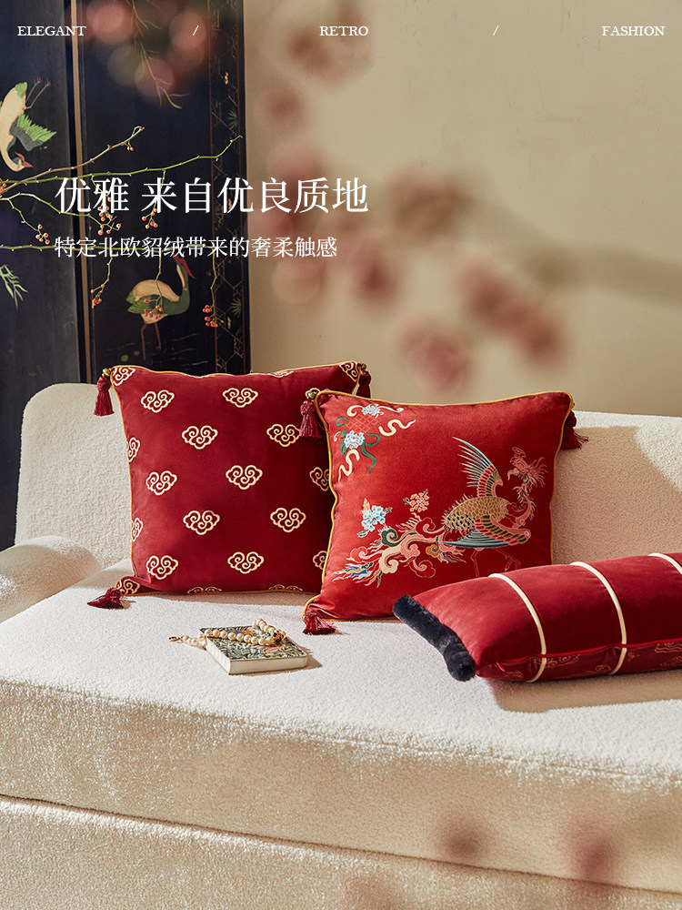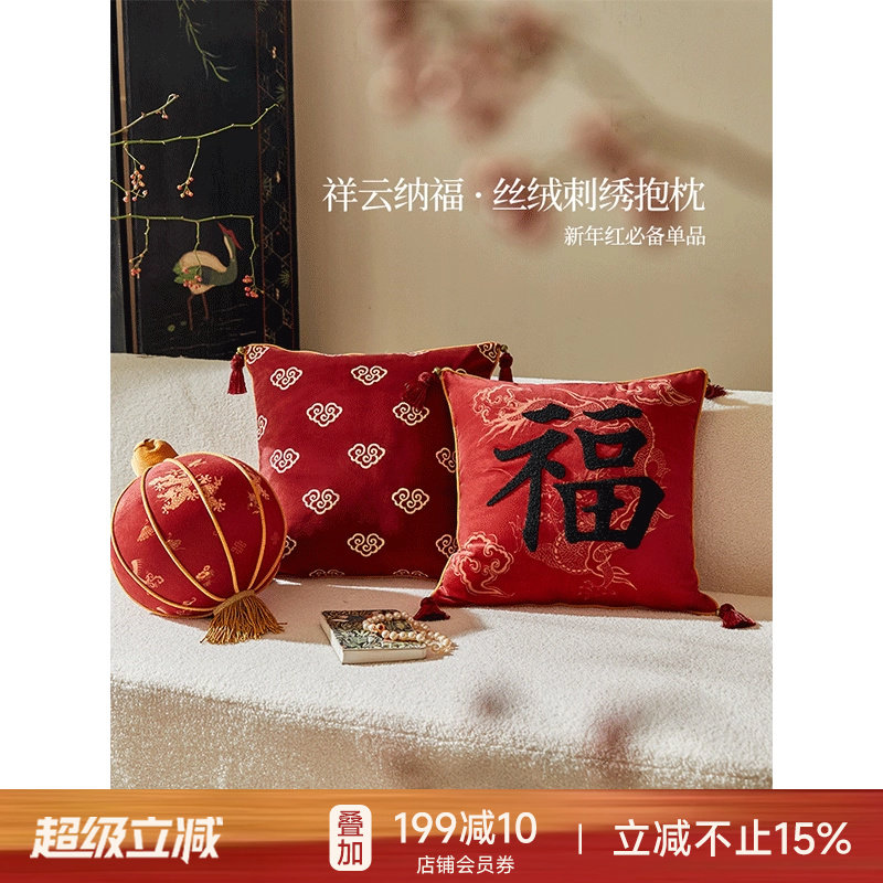 轻奢复古客厅沙发新年红色节日睡觉夹腿靠垫