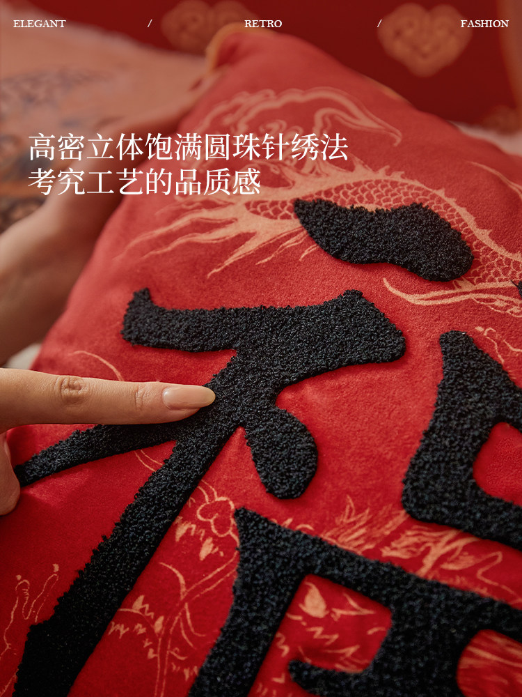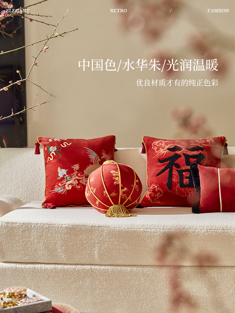 蜡笔派福龙系列抱枕轻奢复古客厅沙发新年红色节日睡觉夹腿靠垫