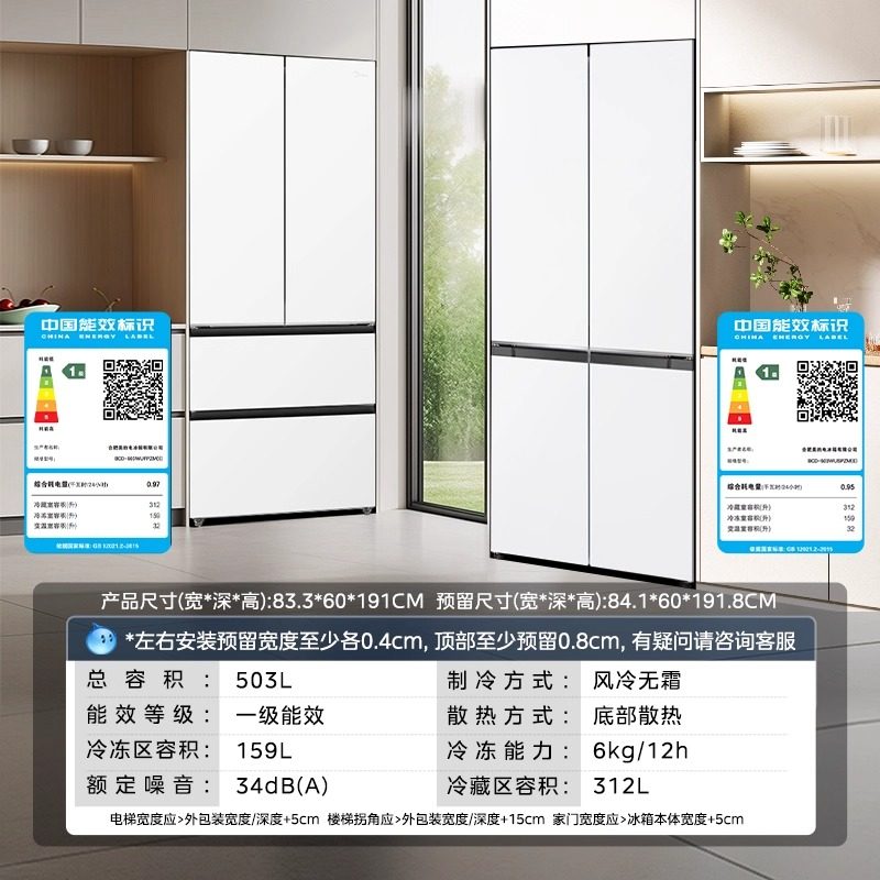 美的503超薄零嵌入式法式双开四门家用白色电冰箱风冷无霜
