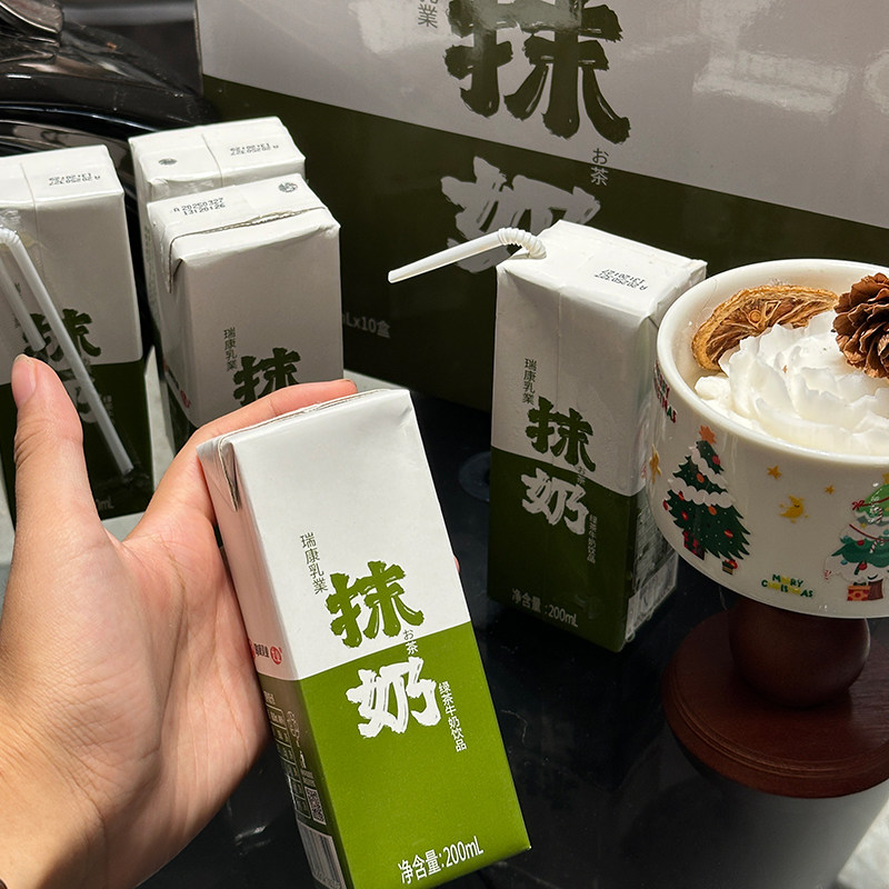 瑞康抹茶牛奶甜抹奶饮品办公室200ml*10支装即饮风味牛奶休闲饮料