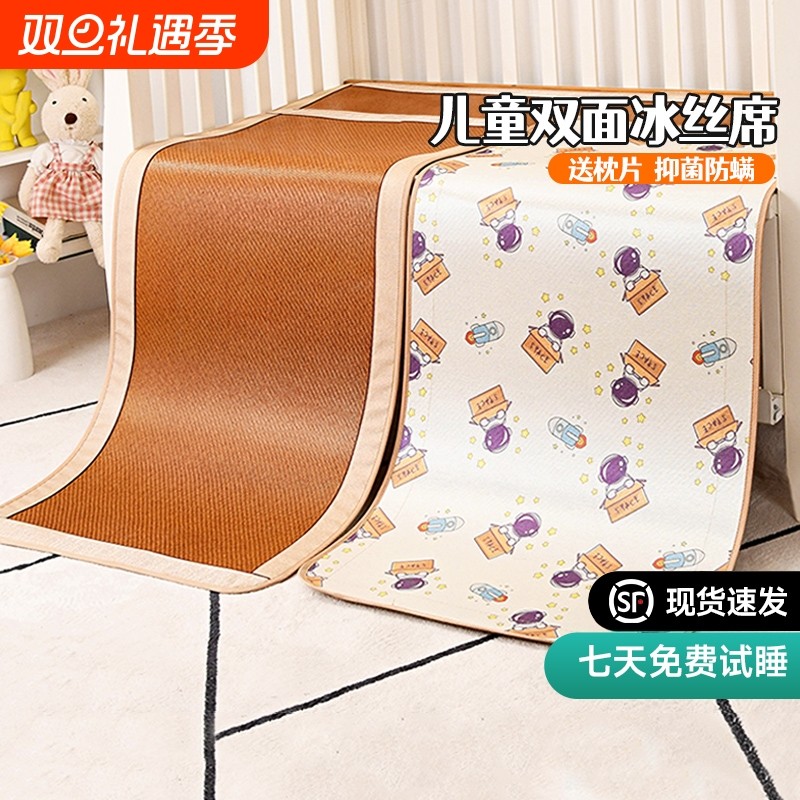 婴儿凉席儿童幼儿园儿童床午睡夏季宝宝可折叠双面冰丝草席藤席子
