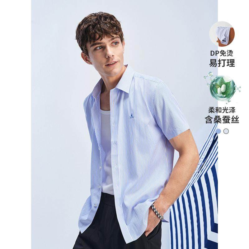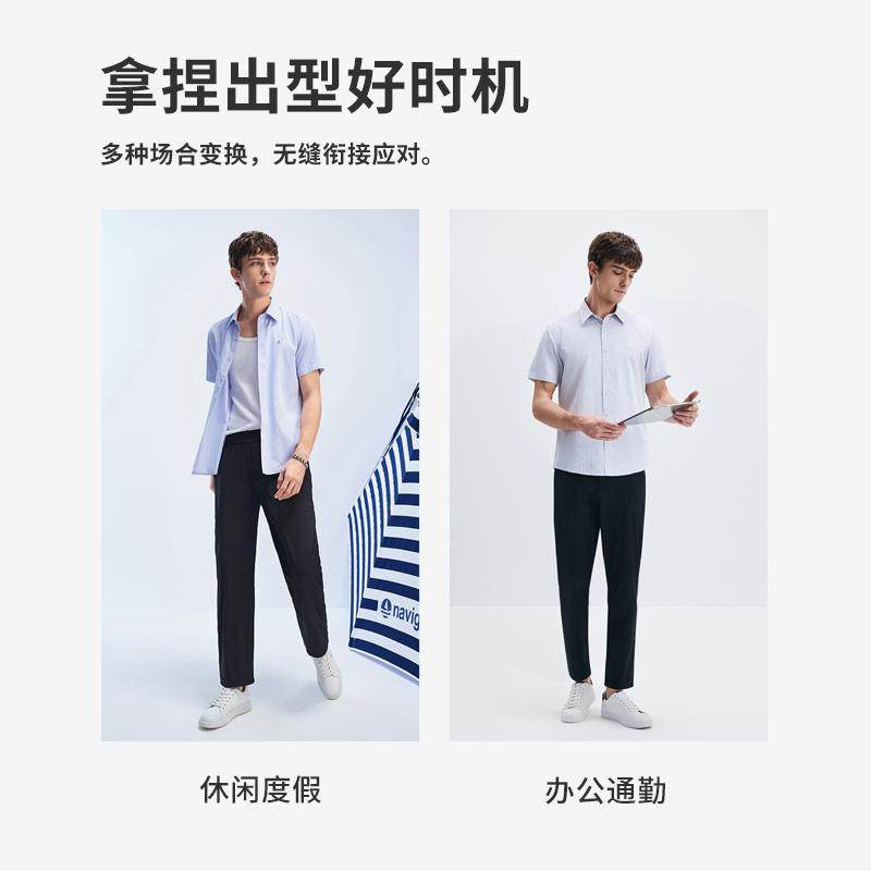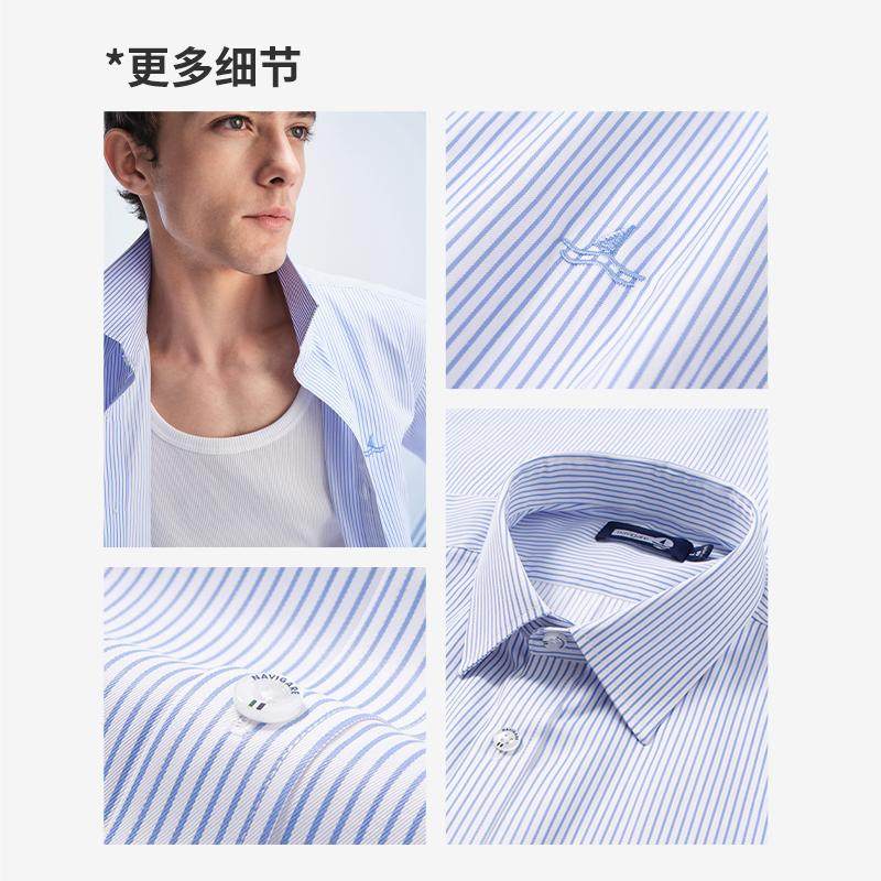 [天丝]Navigare意大利小帆船夏季蓝色衬衫男短袖休闲条纹衬衣