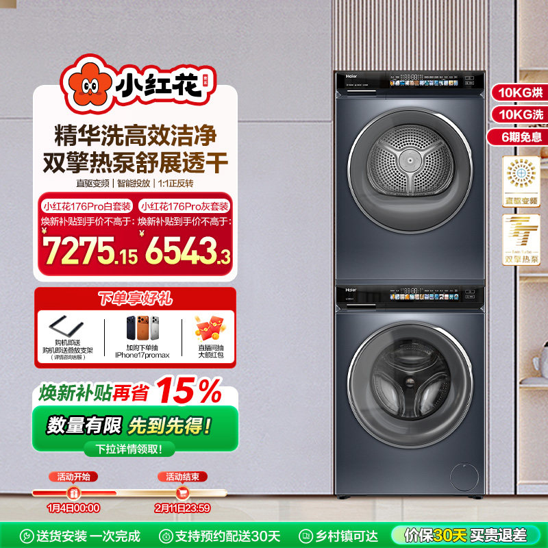 海尔小红花洗烘套装10kg精华洗双擎洗衣机热泵烘干机176pro升级款