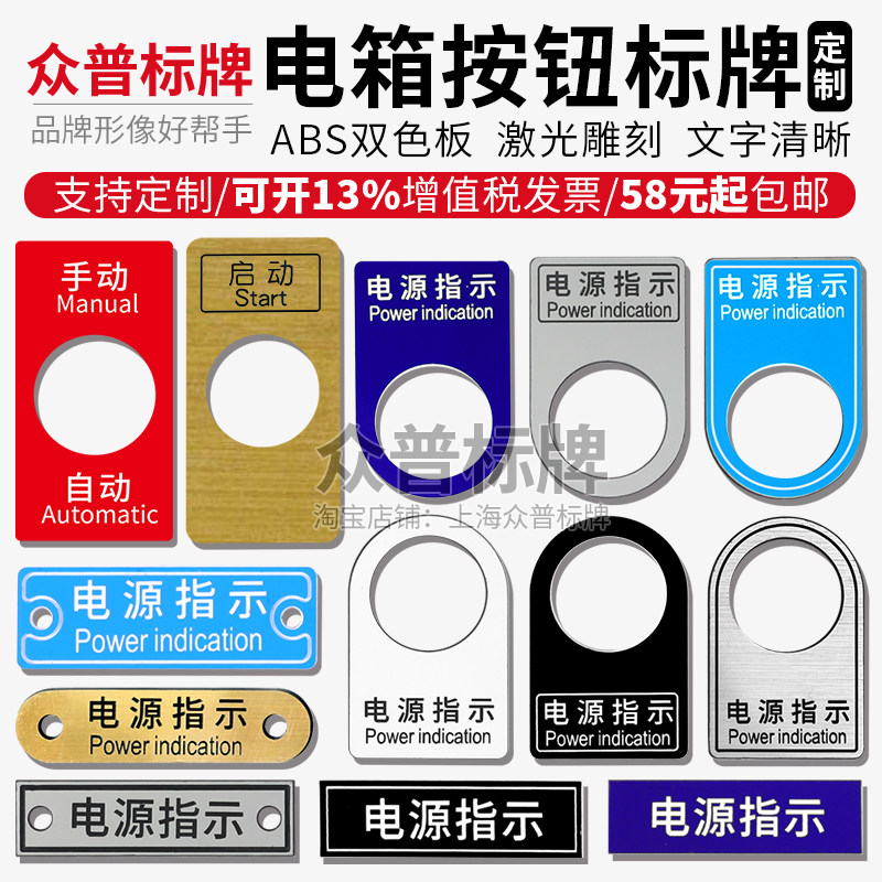 电箱铭牌亚克力按钮指示电气标牌定做配电柜有机双色板电柜标识牌