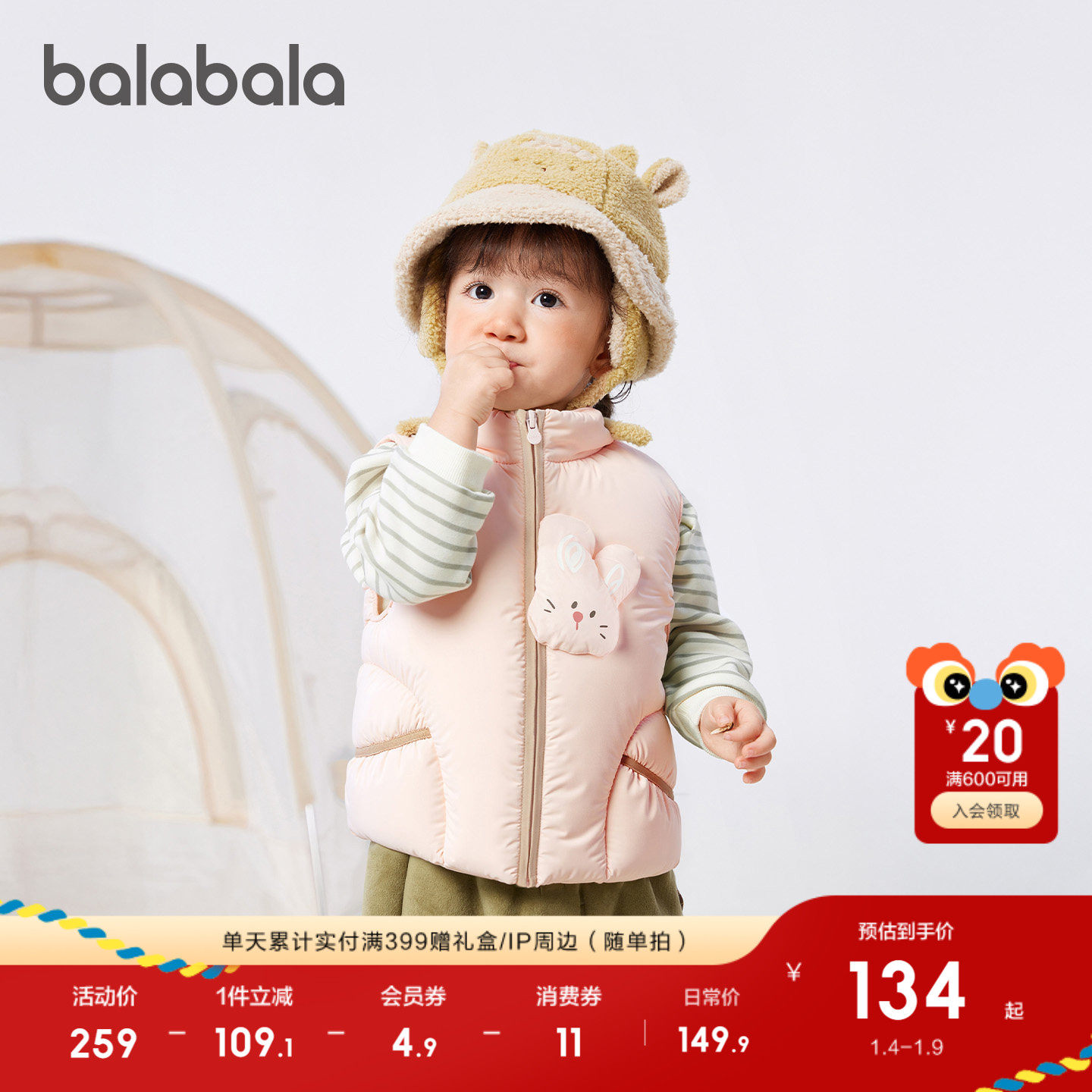 三防羽绒马甲,萌趣小动物造型