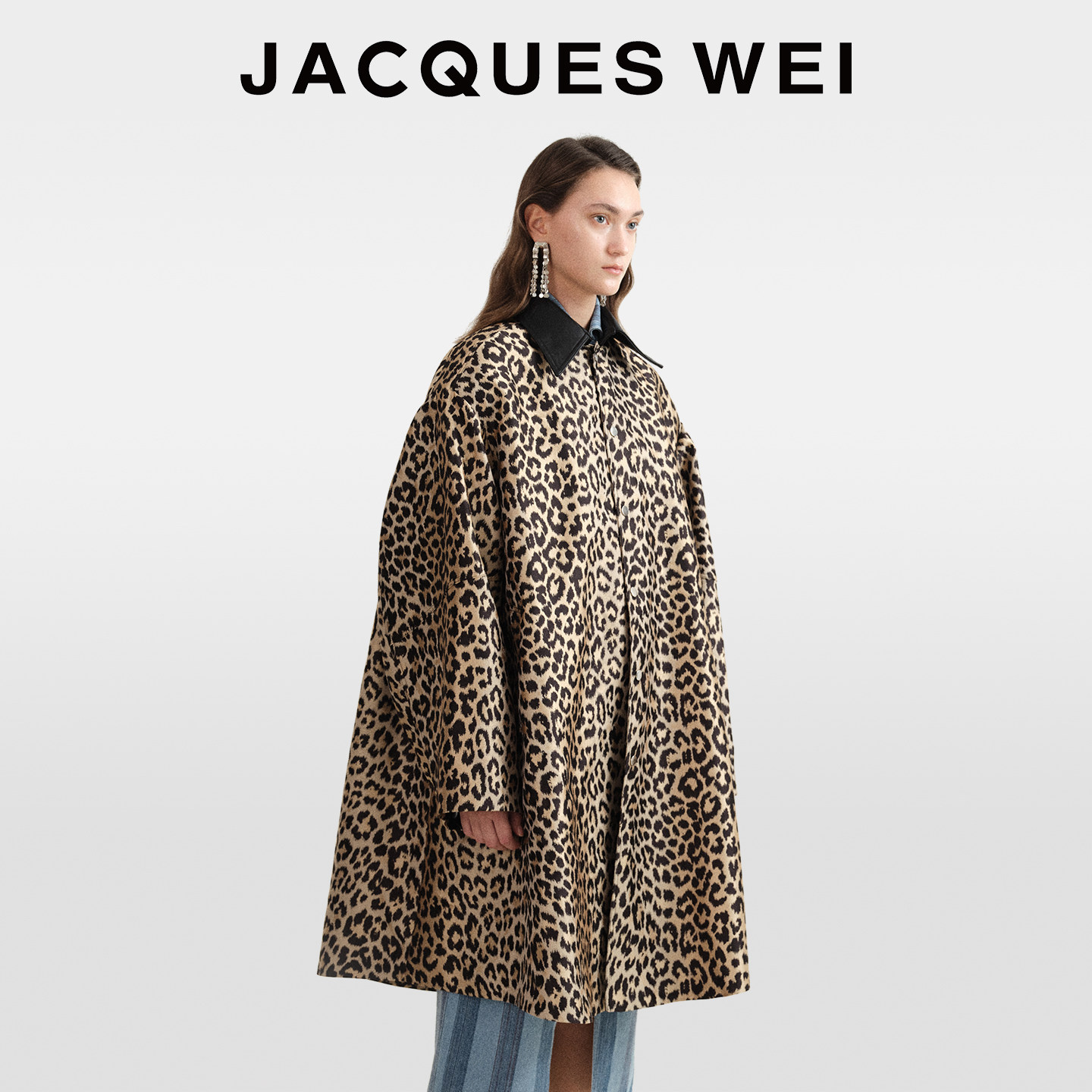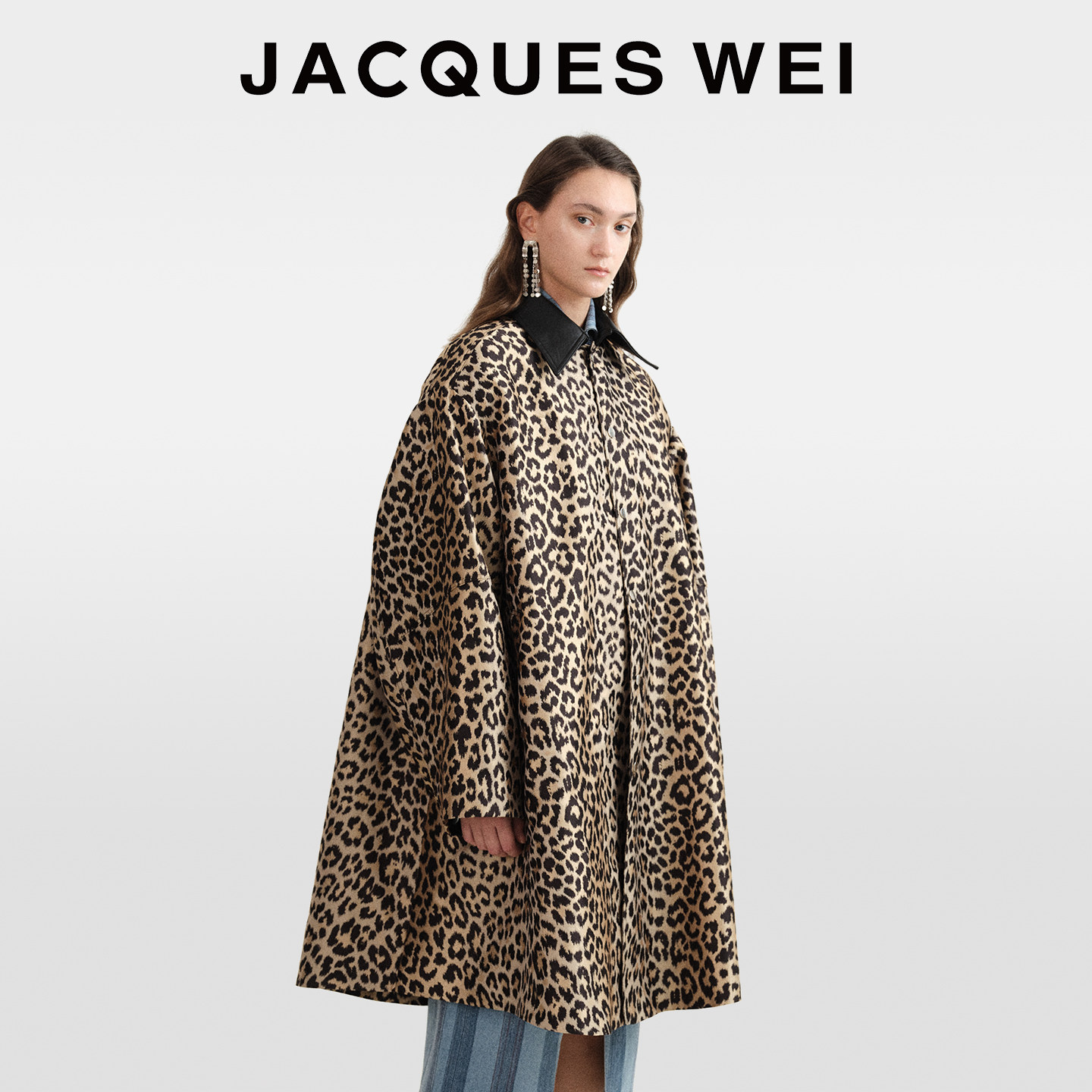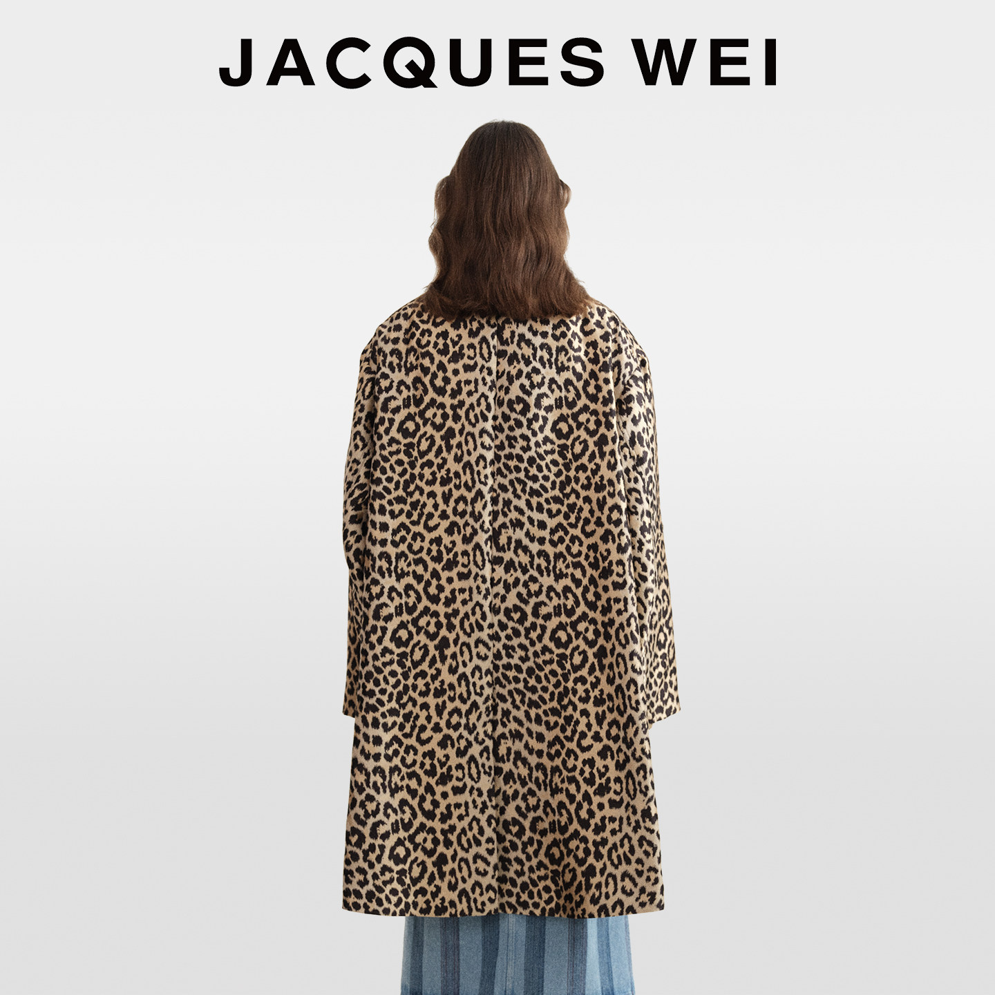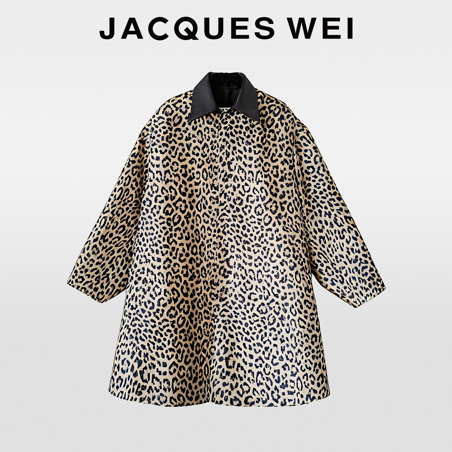 JACQUES WEI秋冬设计师复古豹纹高级感翻领大衣外套女上衣中长款