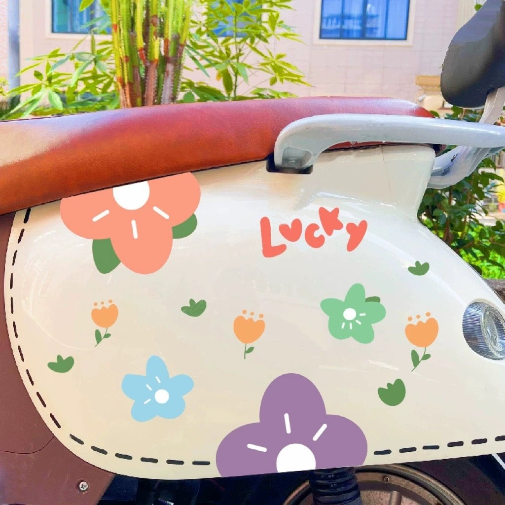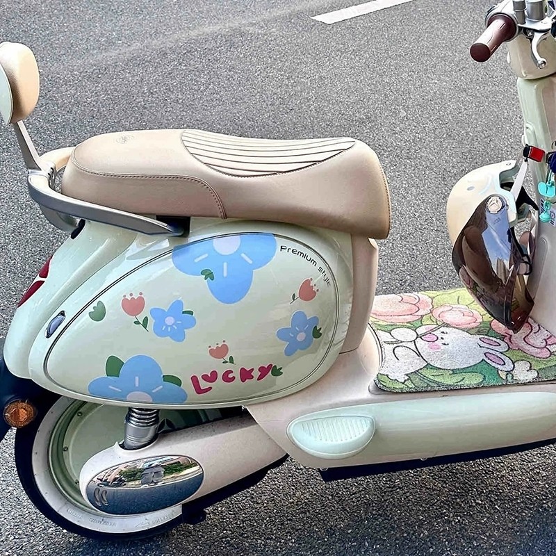 彩色花朵电动车车贴电瓶车小牛雅迪爱玛划痕掩盖可爱装饰防水贴画