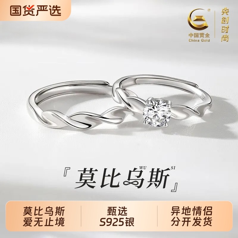央创莫比乌斯情侣对戒纯银情侣款戒指新款爆款送女友S925