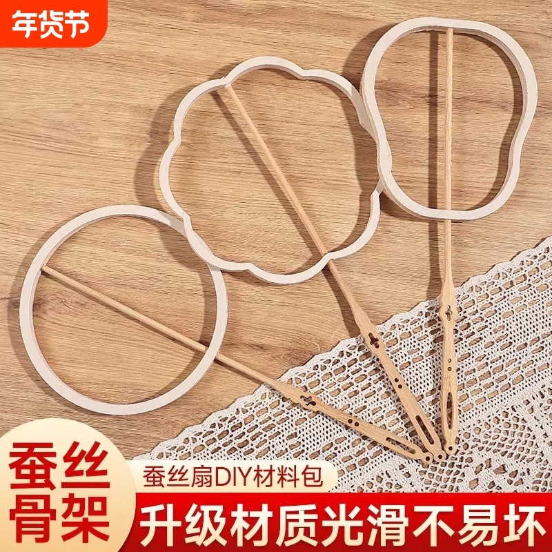 蚕丝扇子骨架diy材料包框架非遗手工自制团扇蚕茧配件半成品儿童