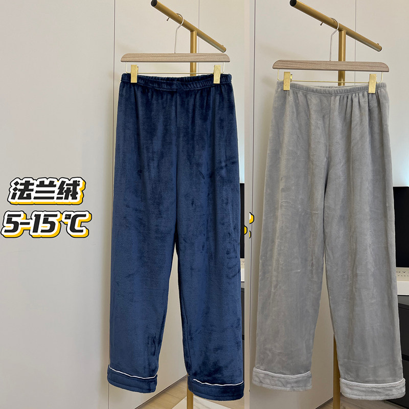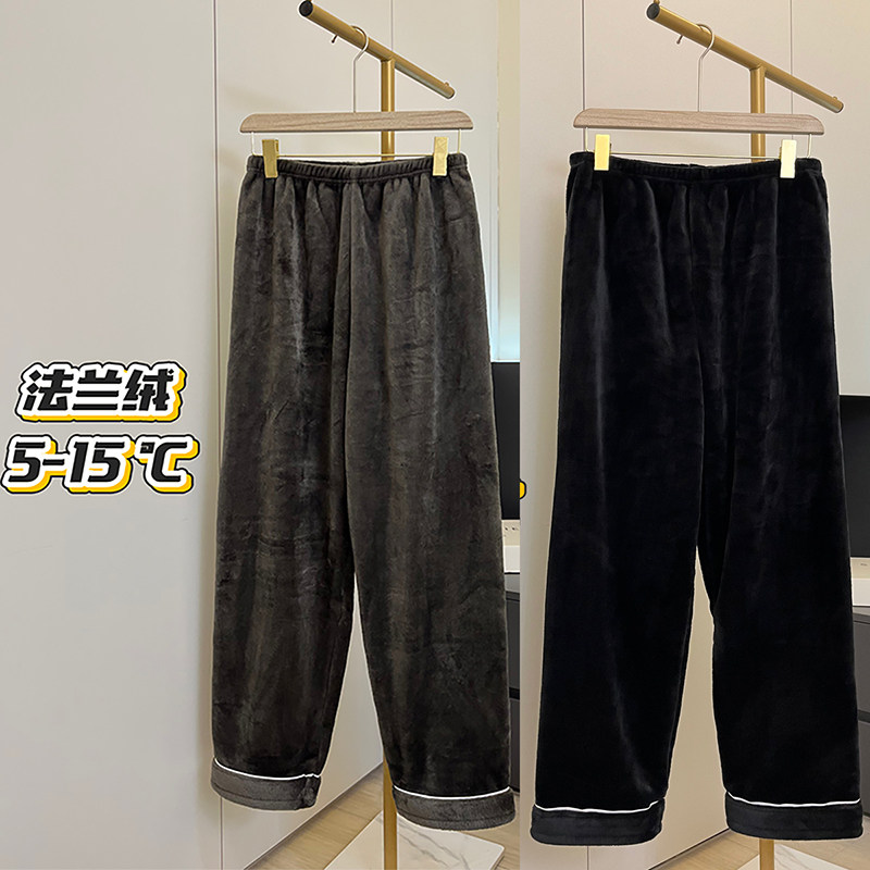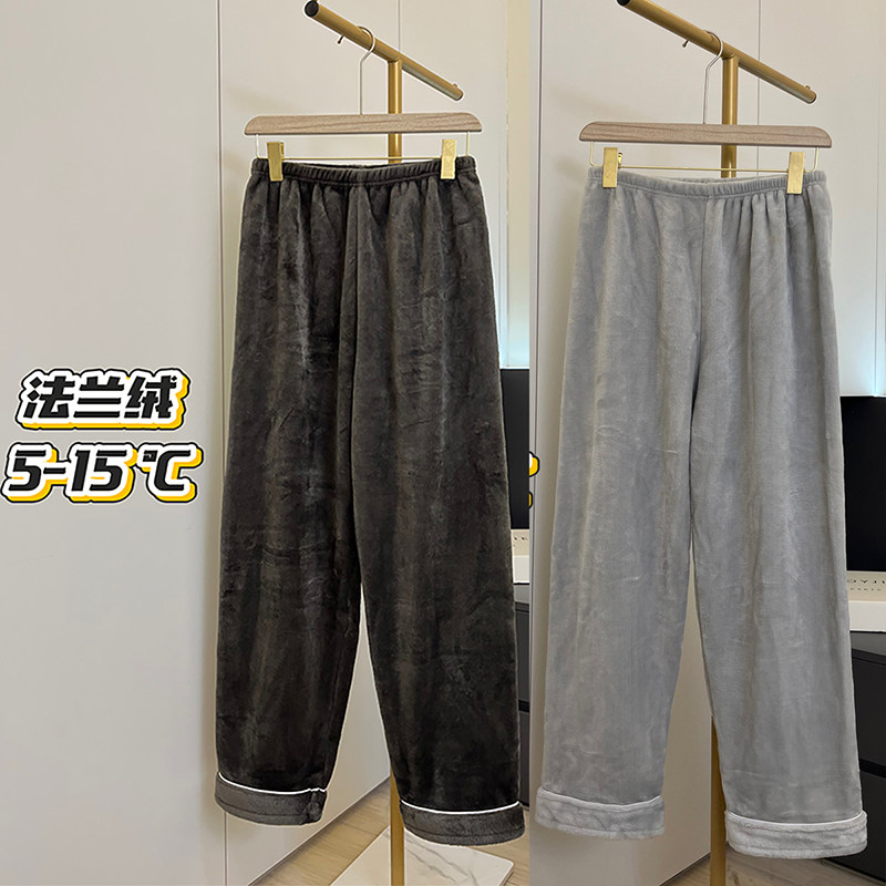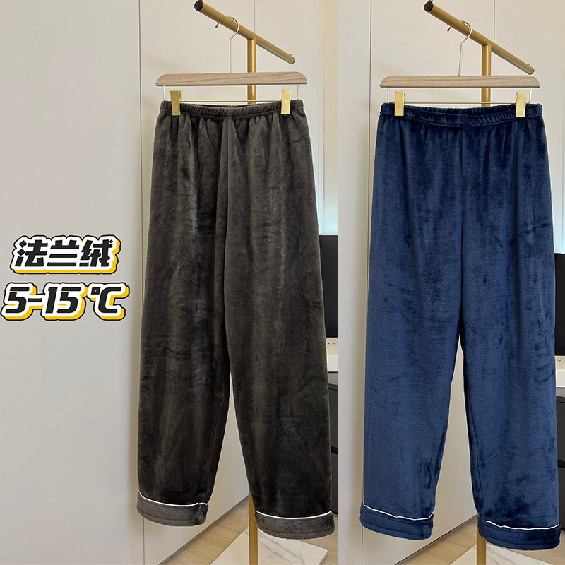 纯色睡裤法兰绒男款秋冬季休闲简约珊瑚绒保暖家居服可外穿遛弯裤