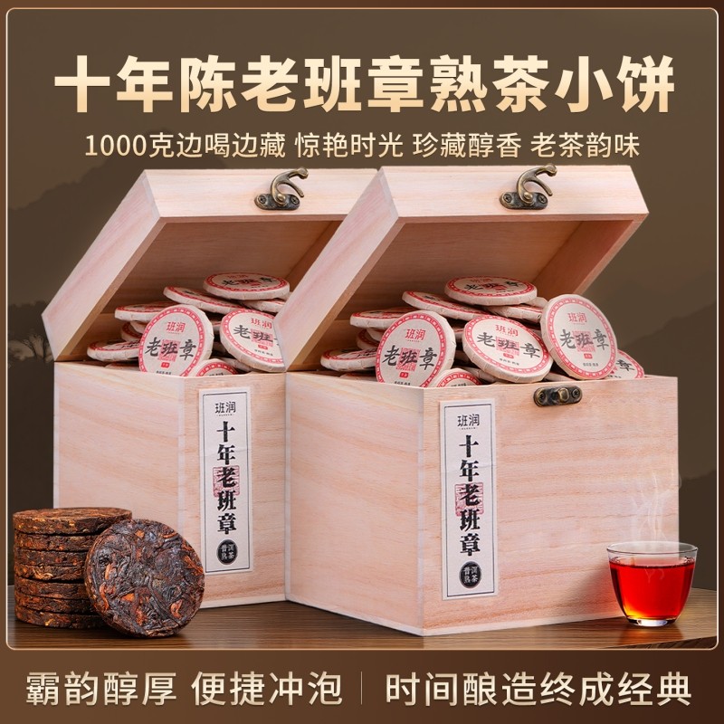 老班章普洱茶熟茶十年以上老熟普小茶饼云南古树茶叶自己喝礼盒装