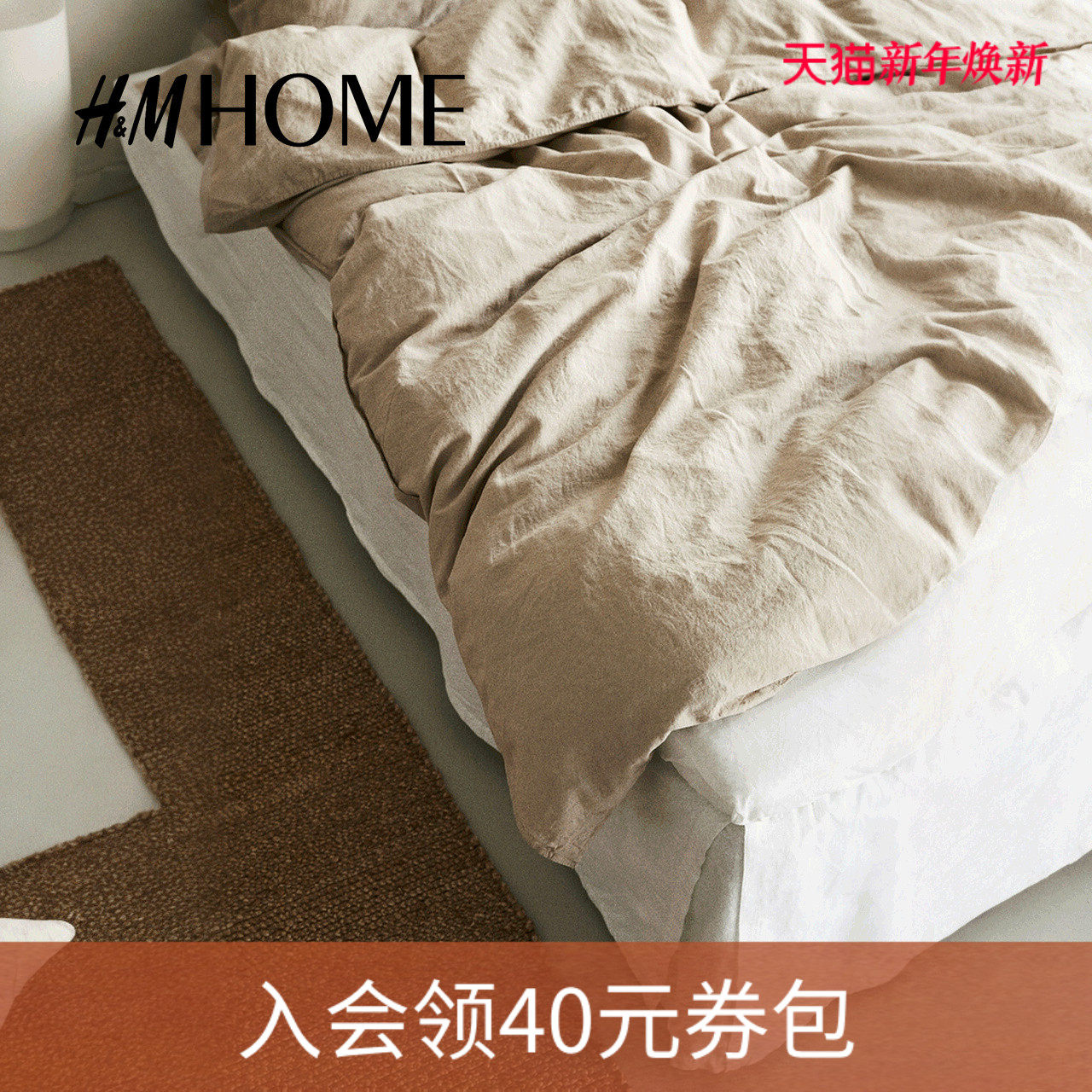 HM2025年冬季新款亚麻混纺单人床裙0962778