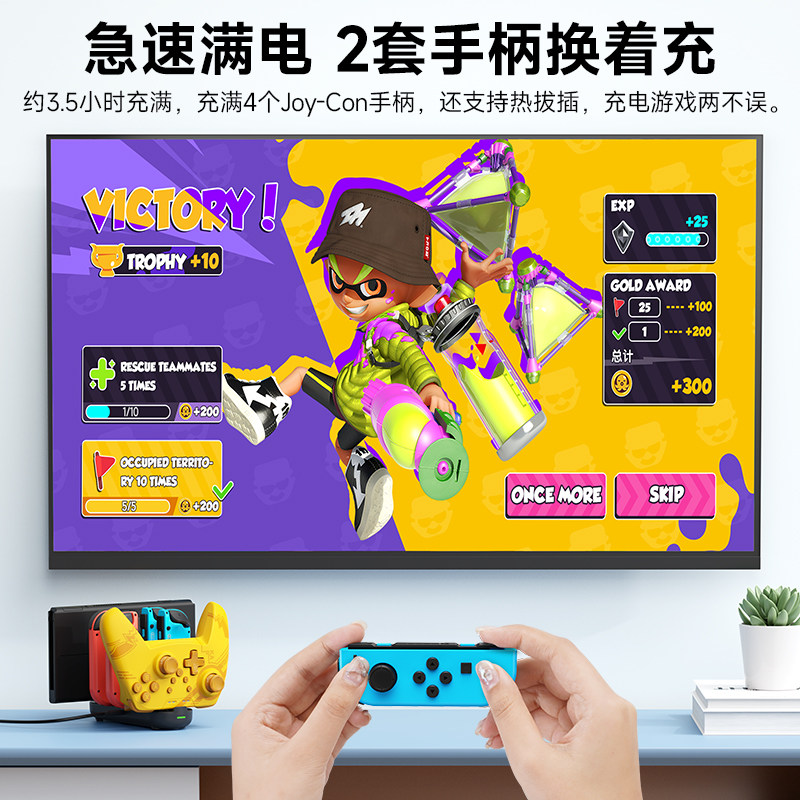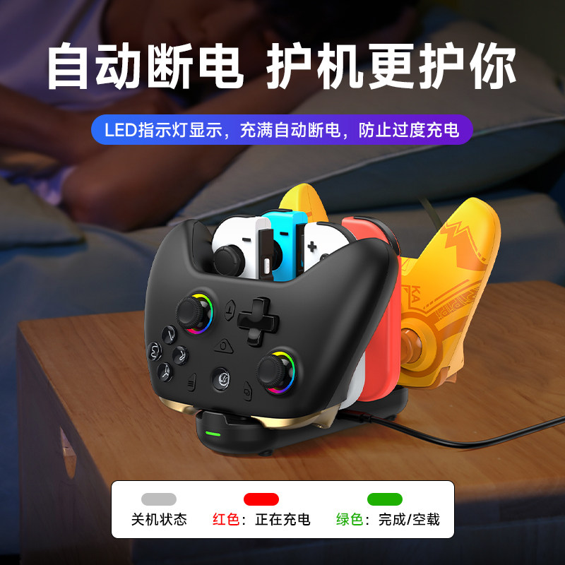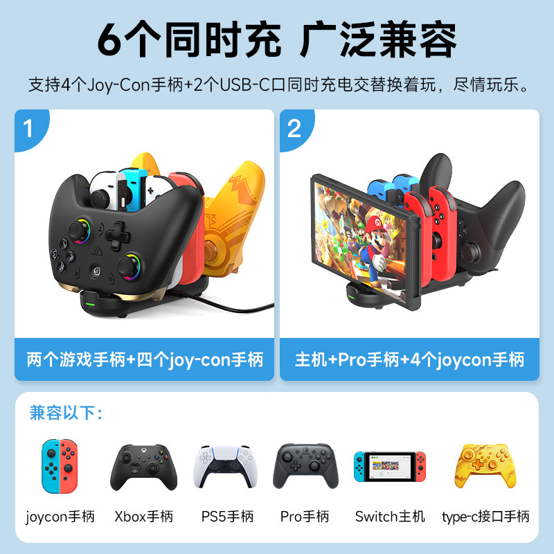 锦读Jemdo适用于任天堂switch手柄pro充电座joycon座充六合一ns游戏机oled充电器多功能底座收纳支架握把配件