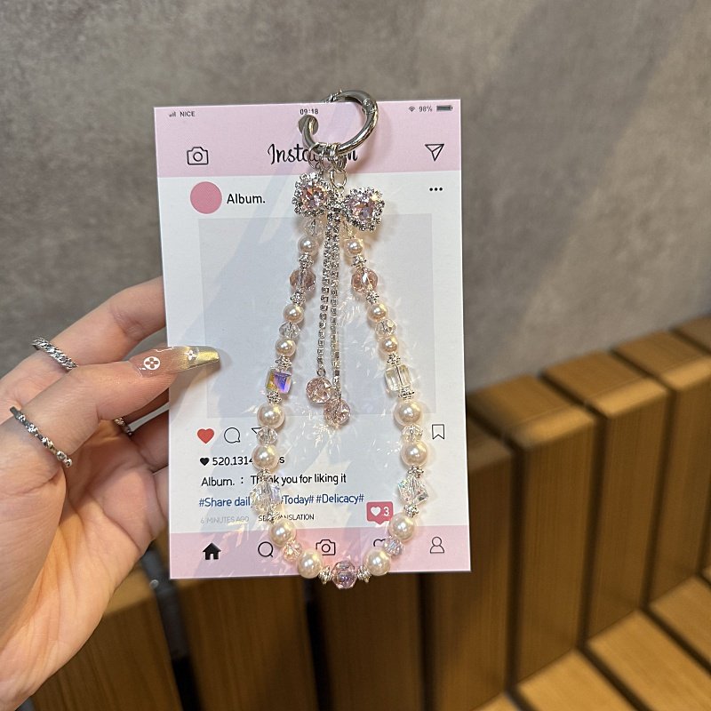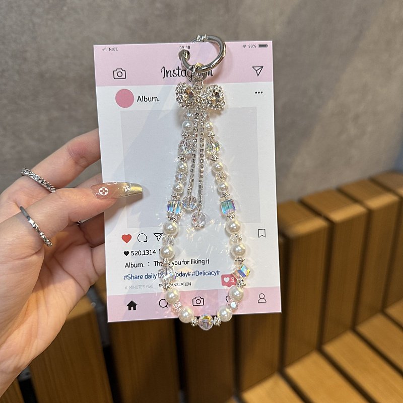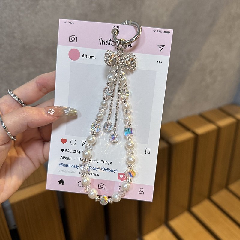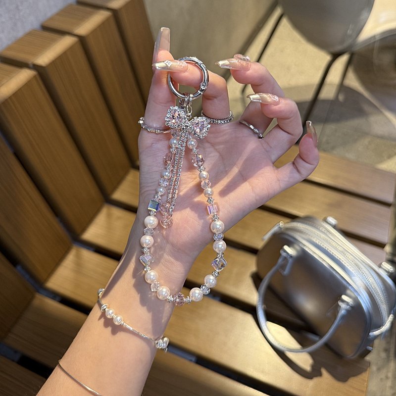 ins闪钻蝴蝶结流苏手机链防丢手机挂绳包挂件挂饰钥匙扣个性创意